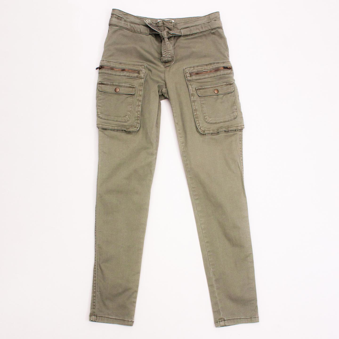 Country Road green khaki pants with multiple pocket details, skinny leg style with hidden zip and tie up front