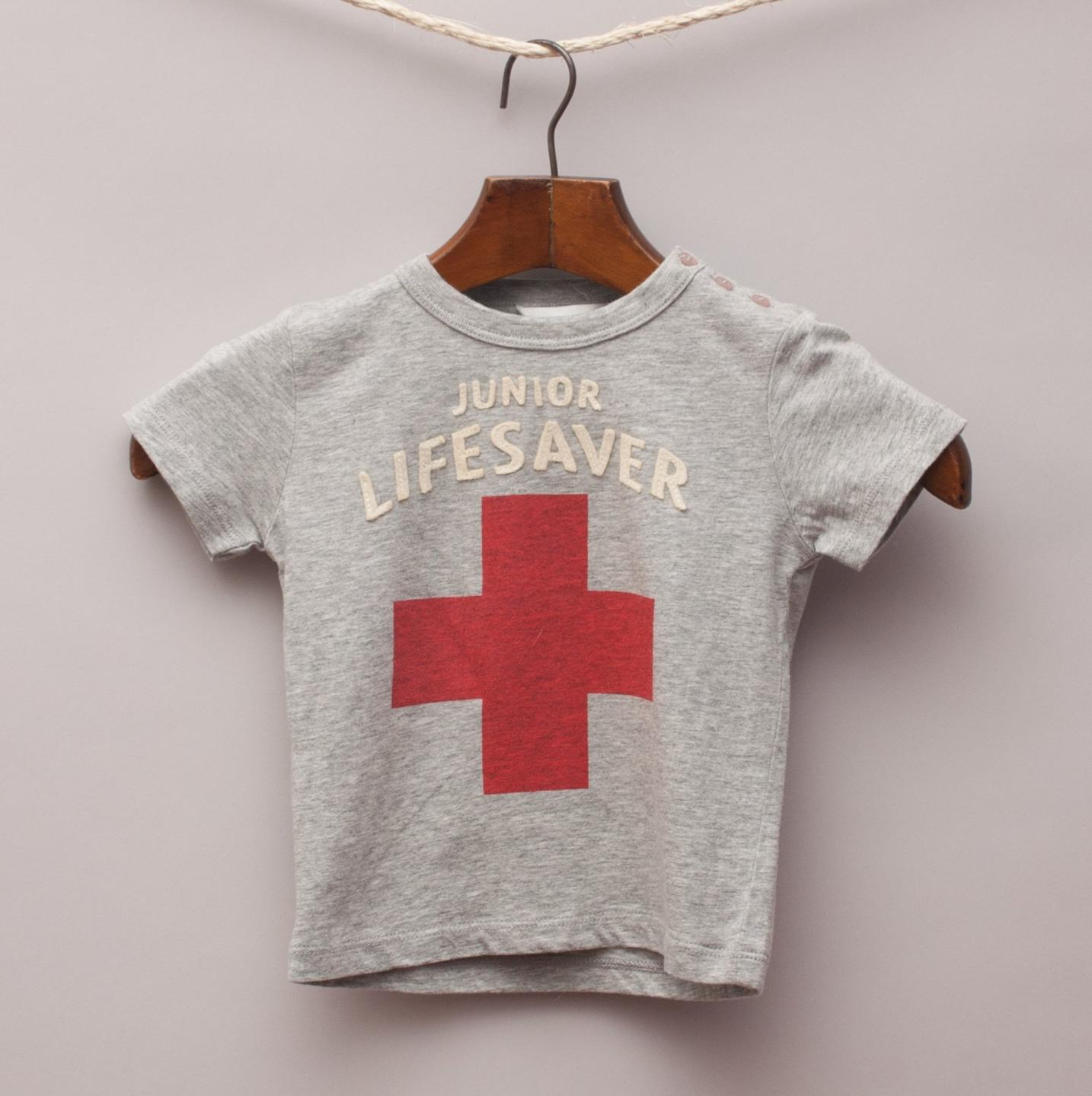 Country Road "brand new with tags" grey t-shirt with embroidered 'lifesaver' on the front and printed medical cross