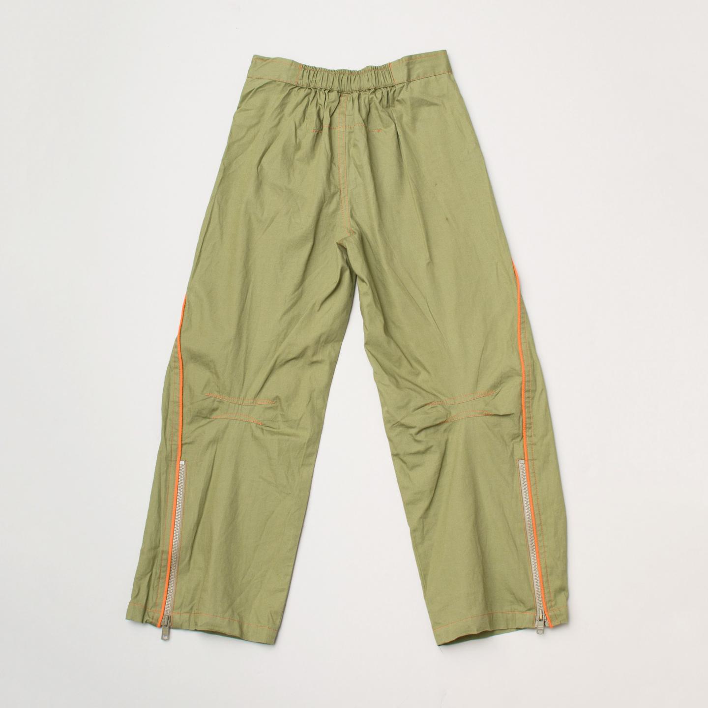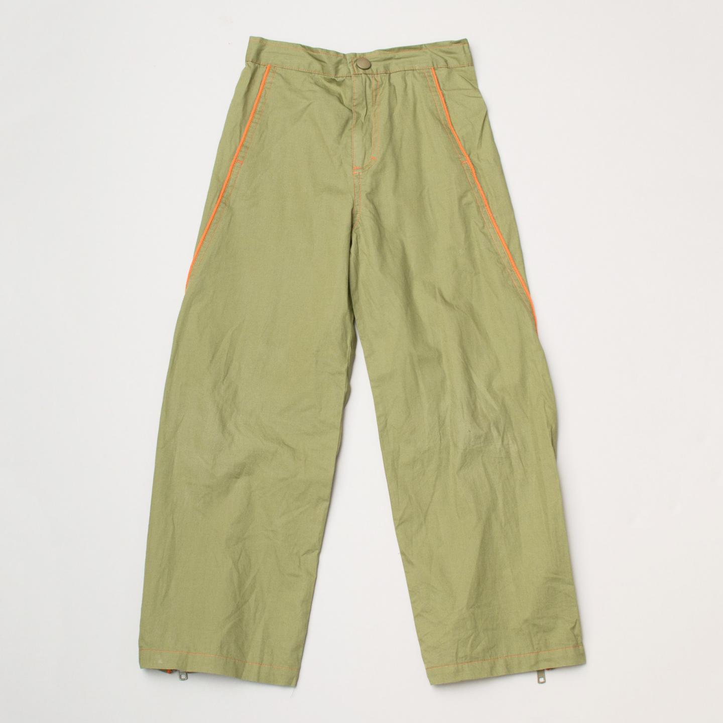 Country Road light weight green pants with orange piping detail, front pockets, zip cuffs and button/zip fastening