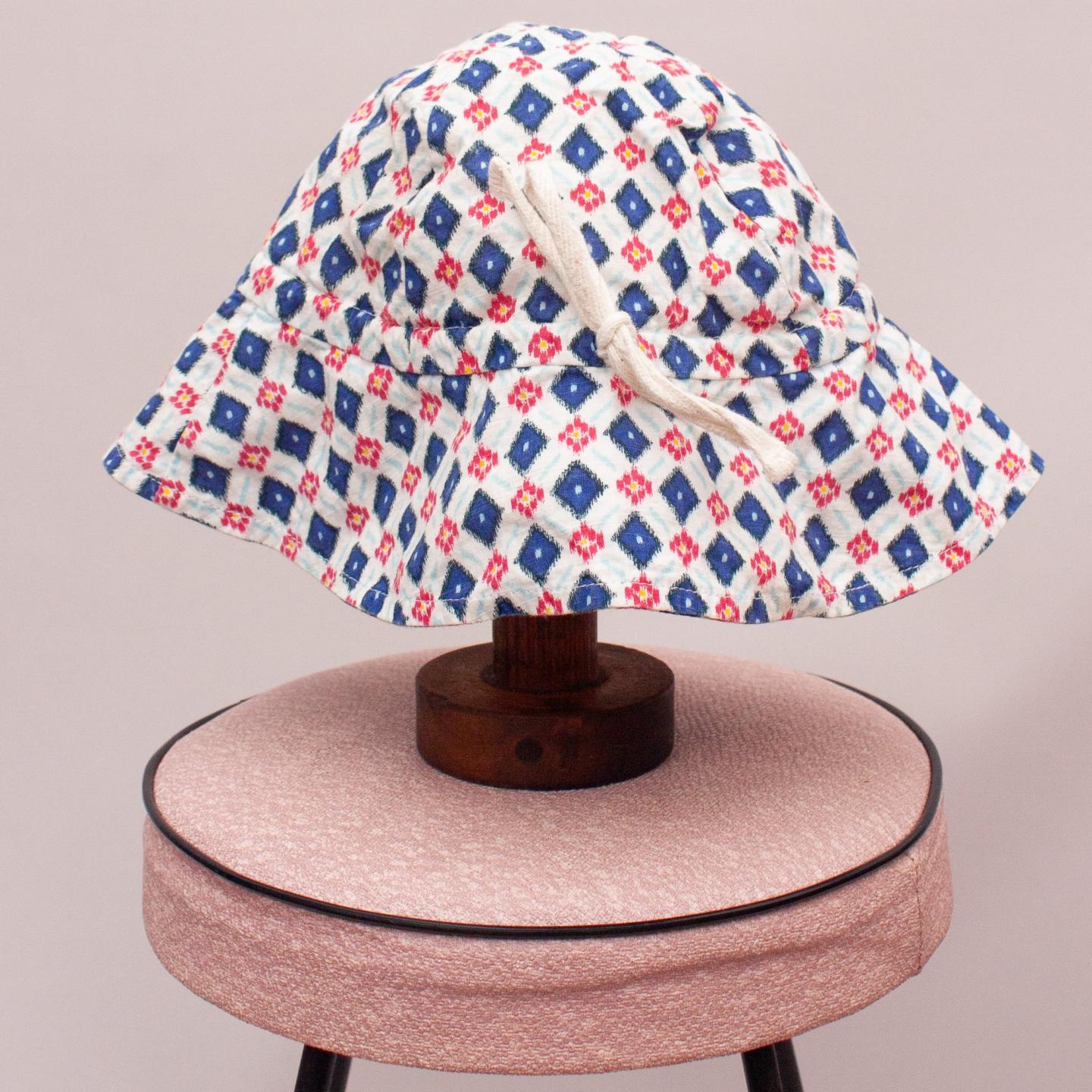 Country Road patterned bucket hat with tie front - Size OS Approx. 50cm diameter