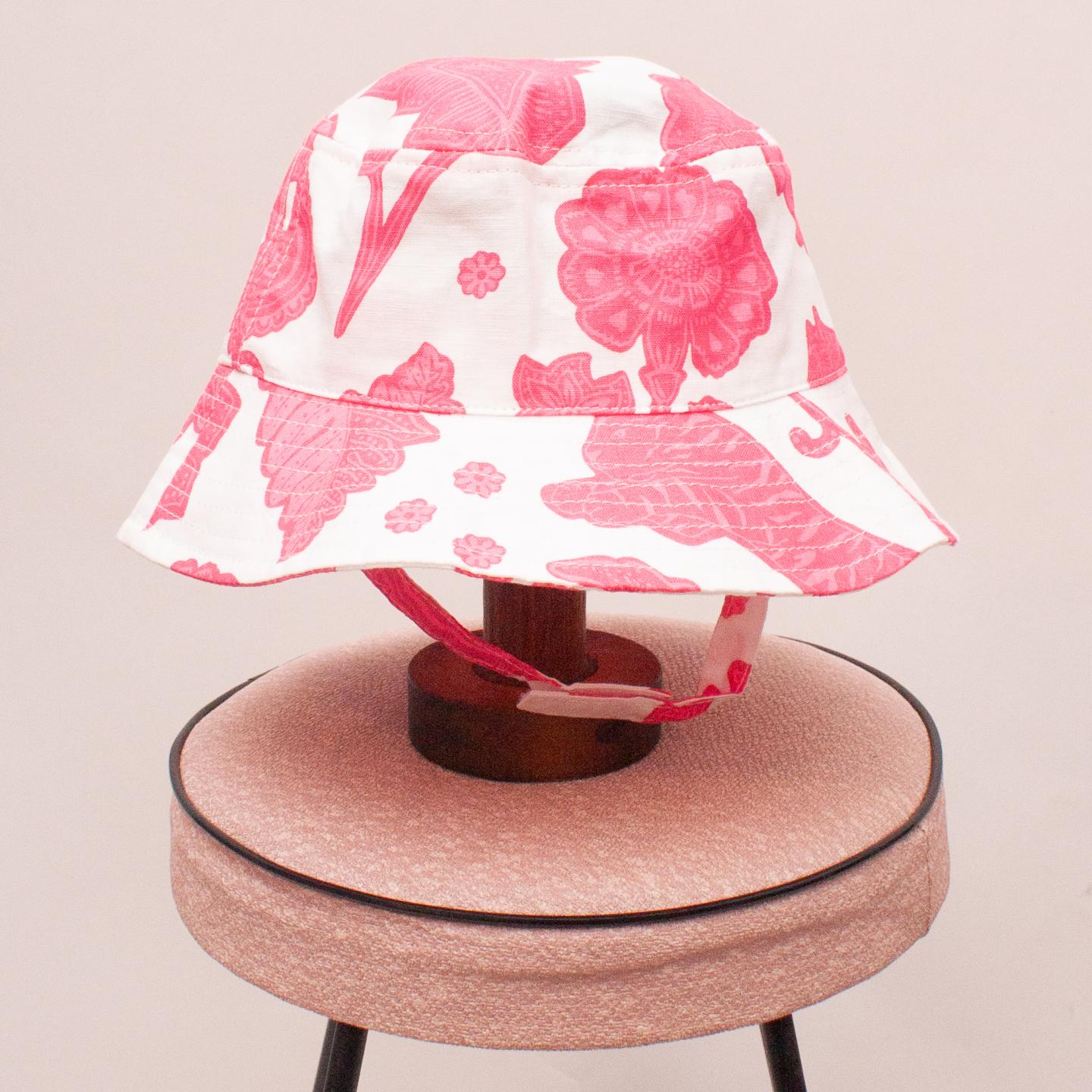 Country Road white and bright pink patterned sun hat with velcro chin strap - Size 12-24Mths approx.