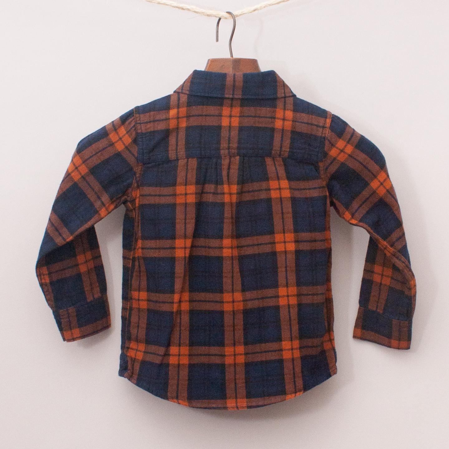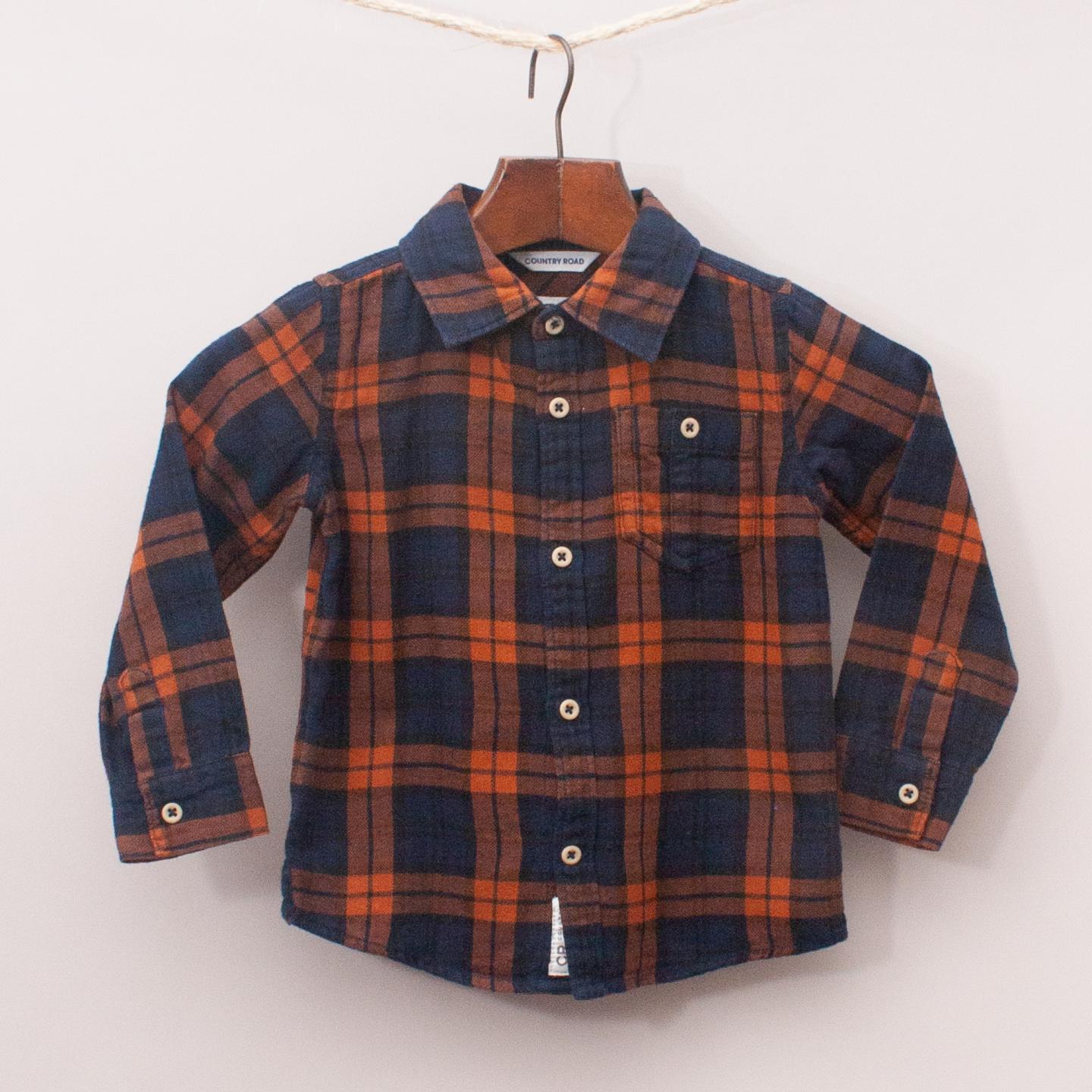 Country Road navy blue and rust coloured, long sleeve plaid shirt with single front pocket and full button down front *100% Cotton