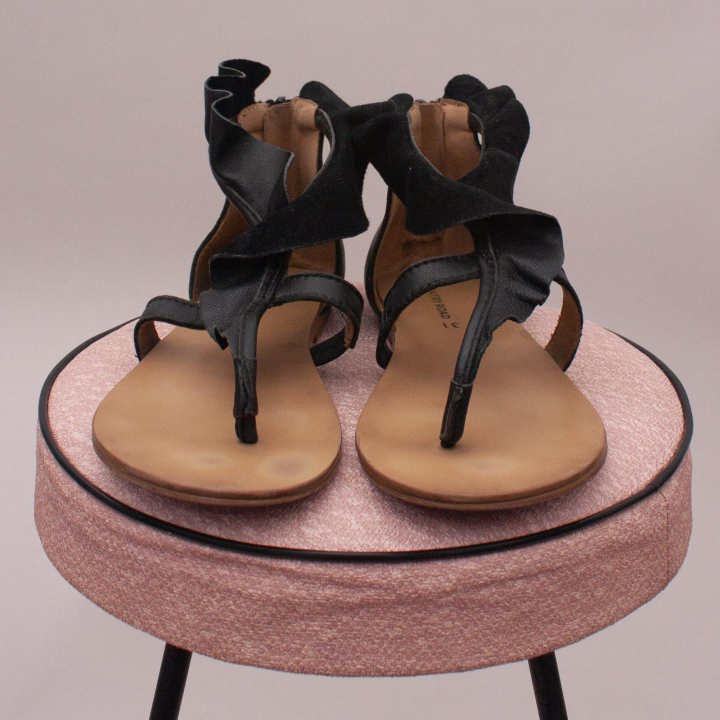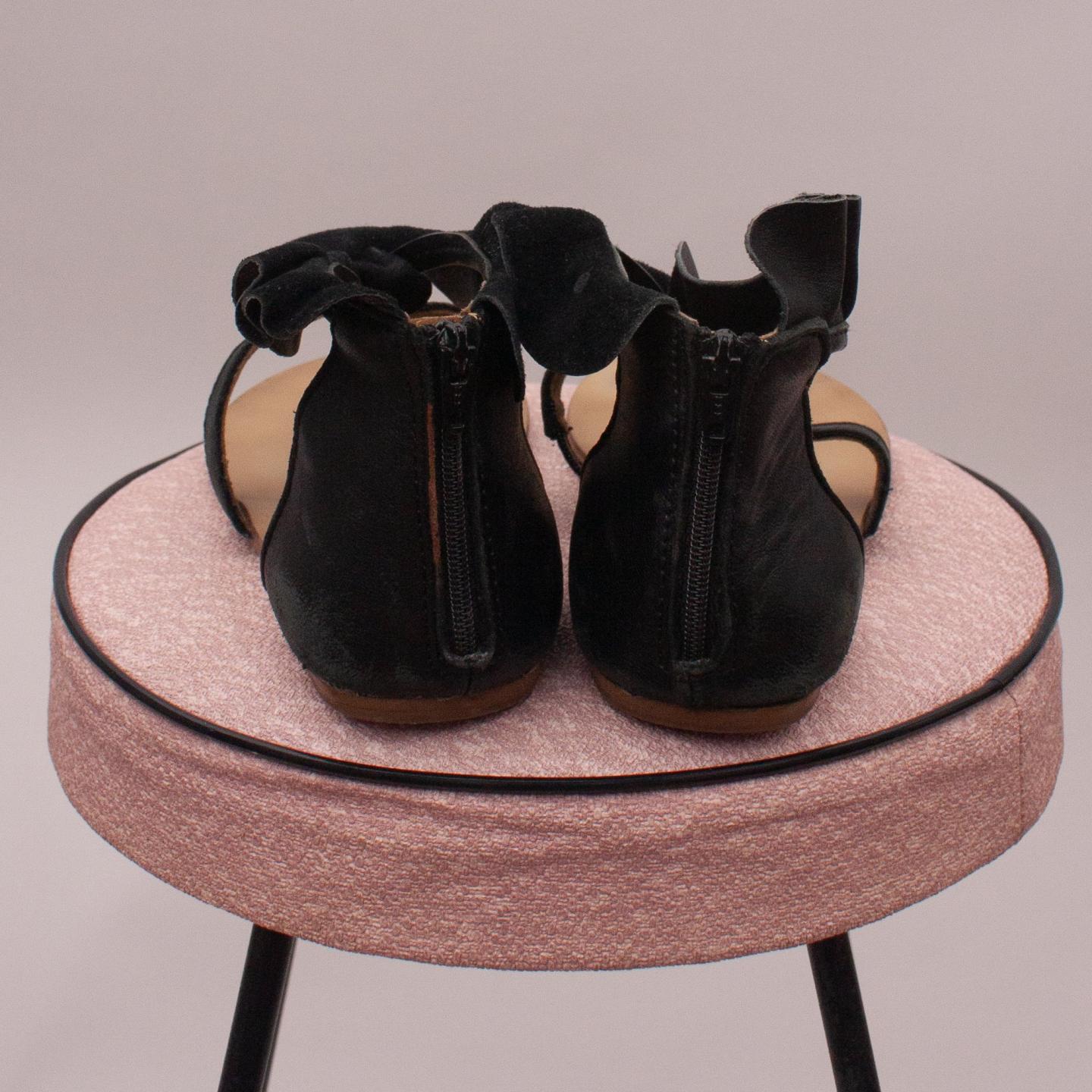 Country Road black ruffled T-bar sandal with single zip back closure and rubber soles - Size EU 31 (Age 6 Approx.)