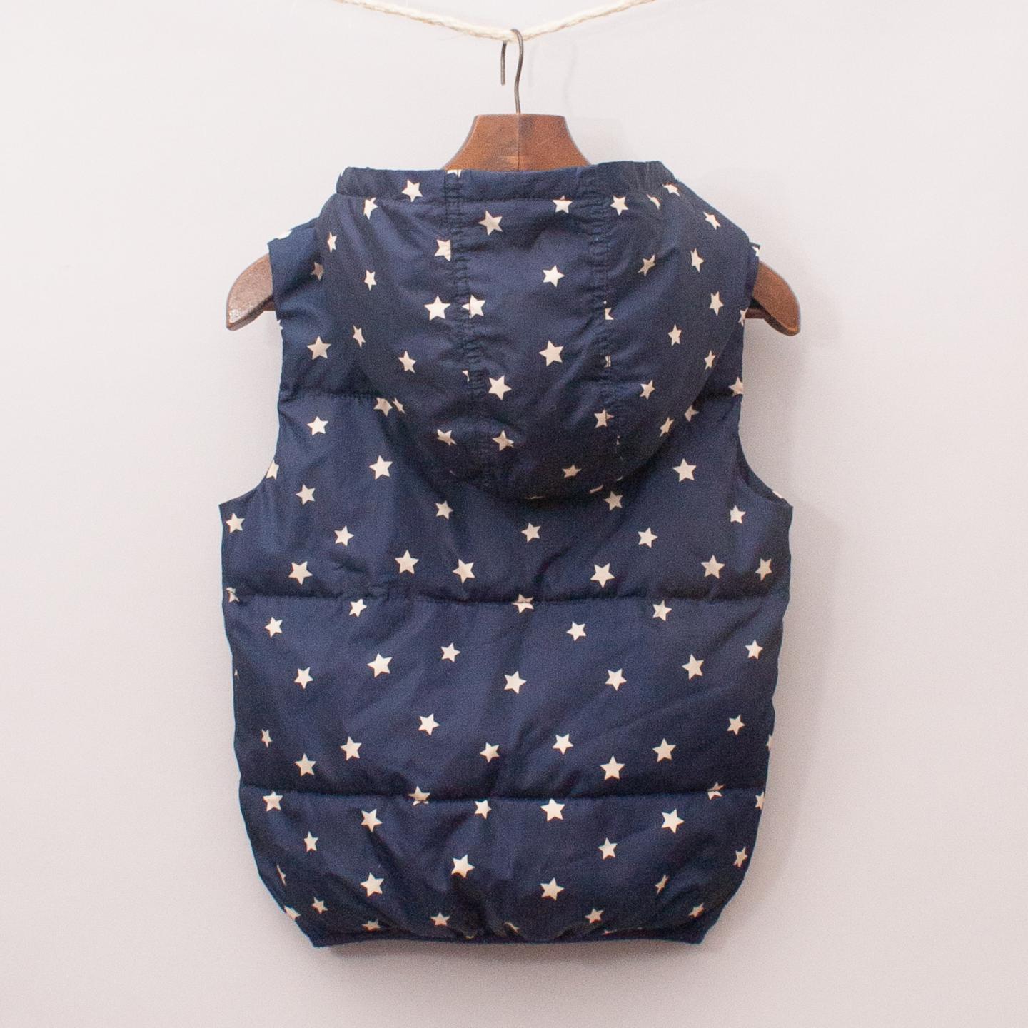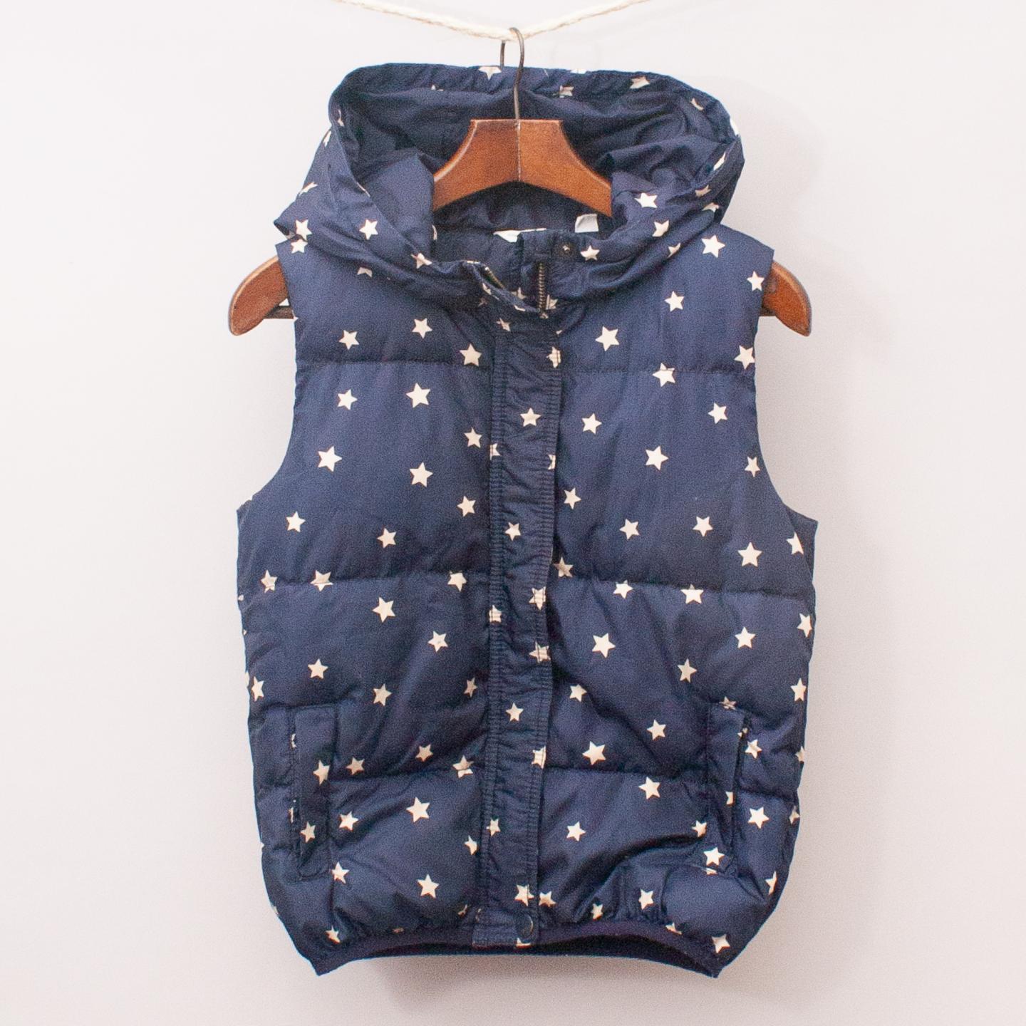 Country Road navy blue padded vest with built in hood, star pattern throughout, two front pockets and full zip up front *100% Polyester