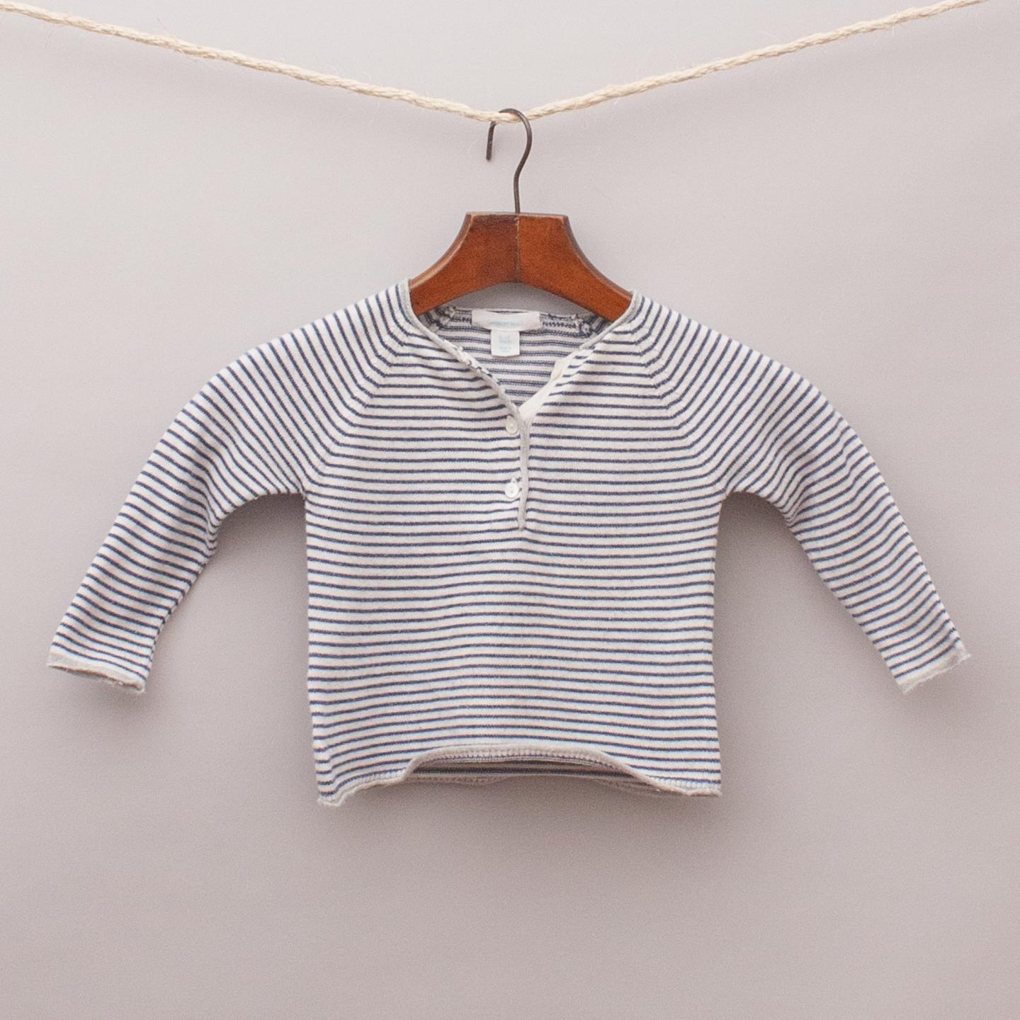 Country Road navy blue and grey striped long sleeve top with rolled edge cuffs and button down front