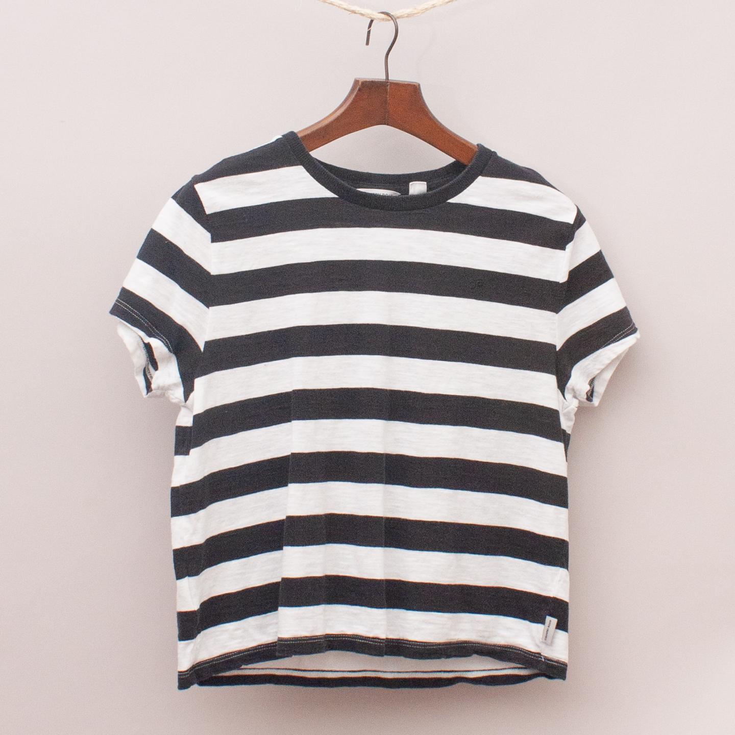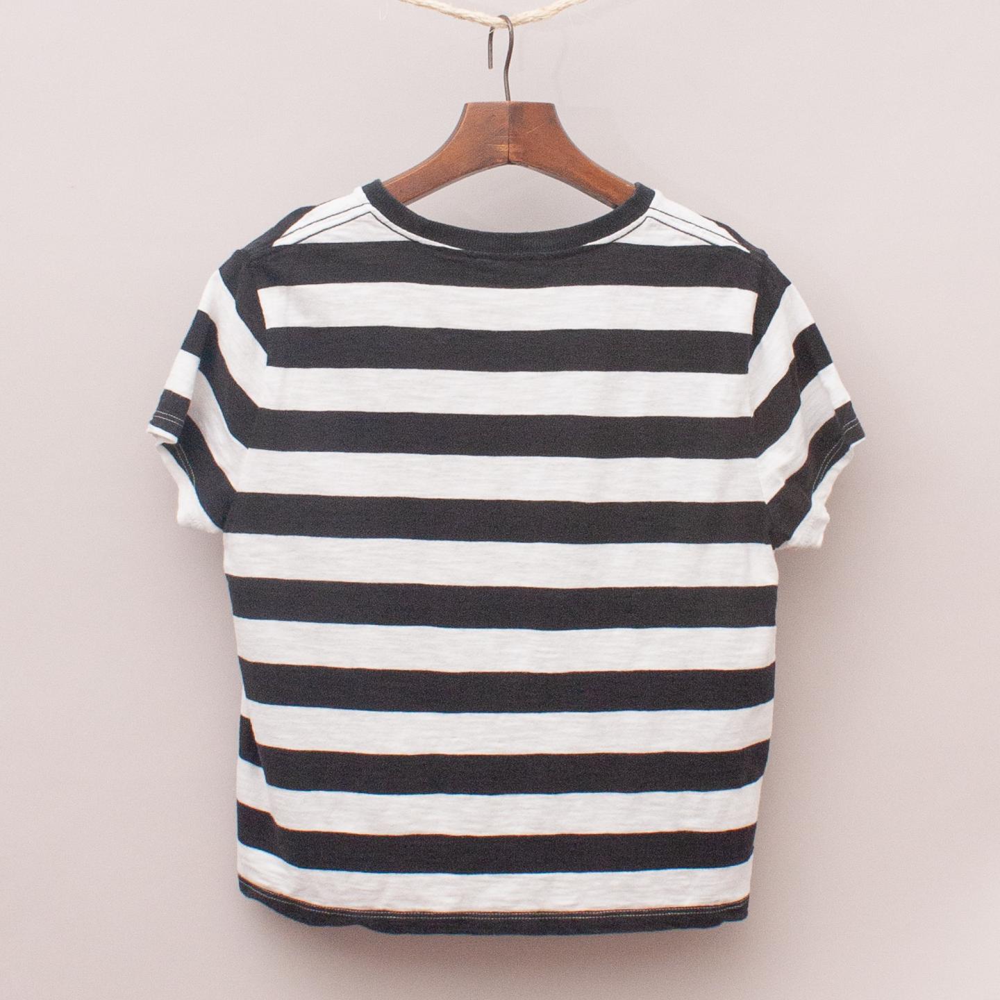 Country Road white and black striped t-shirt with black collar *100% Cotton