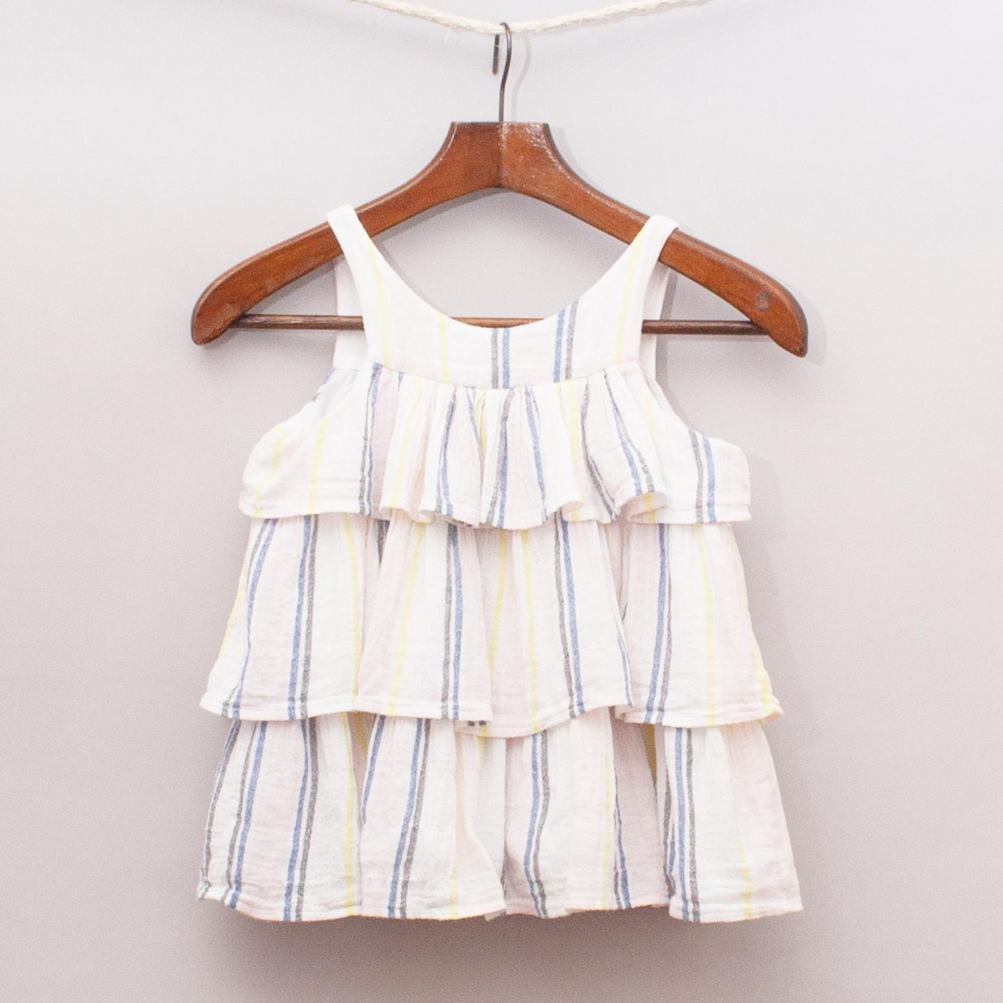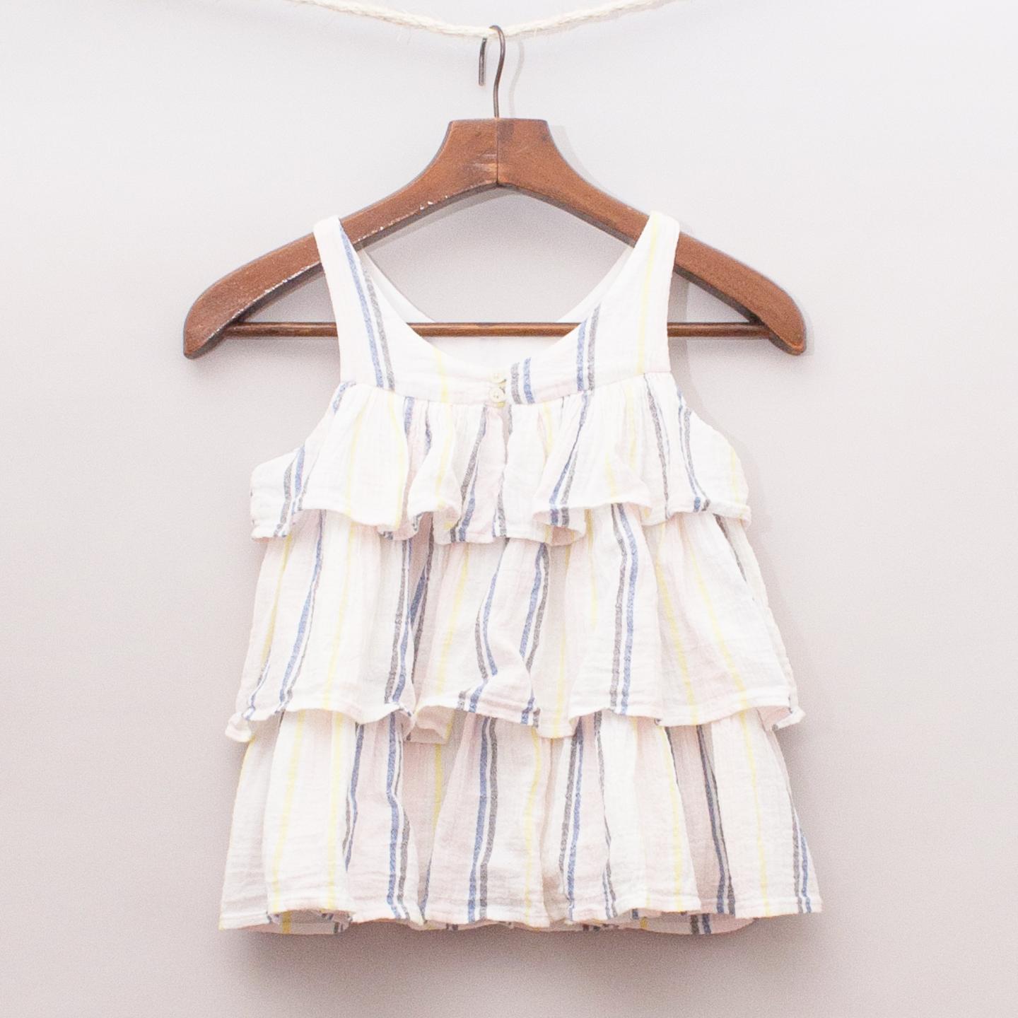 Country Road pastel striped singlet top with ruffles throughout, fully lined and button back closure
