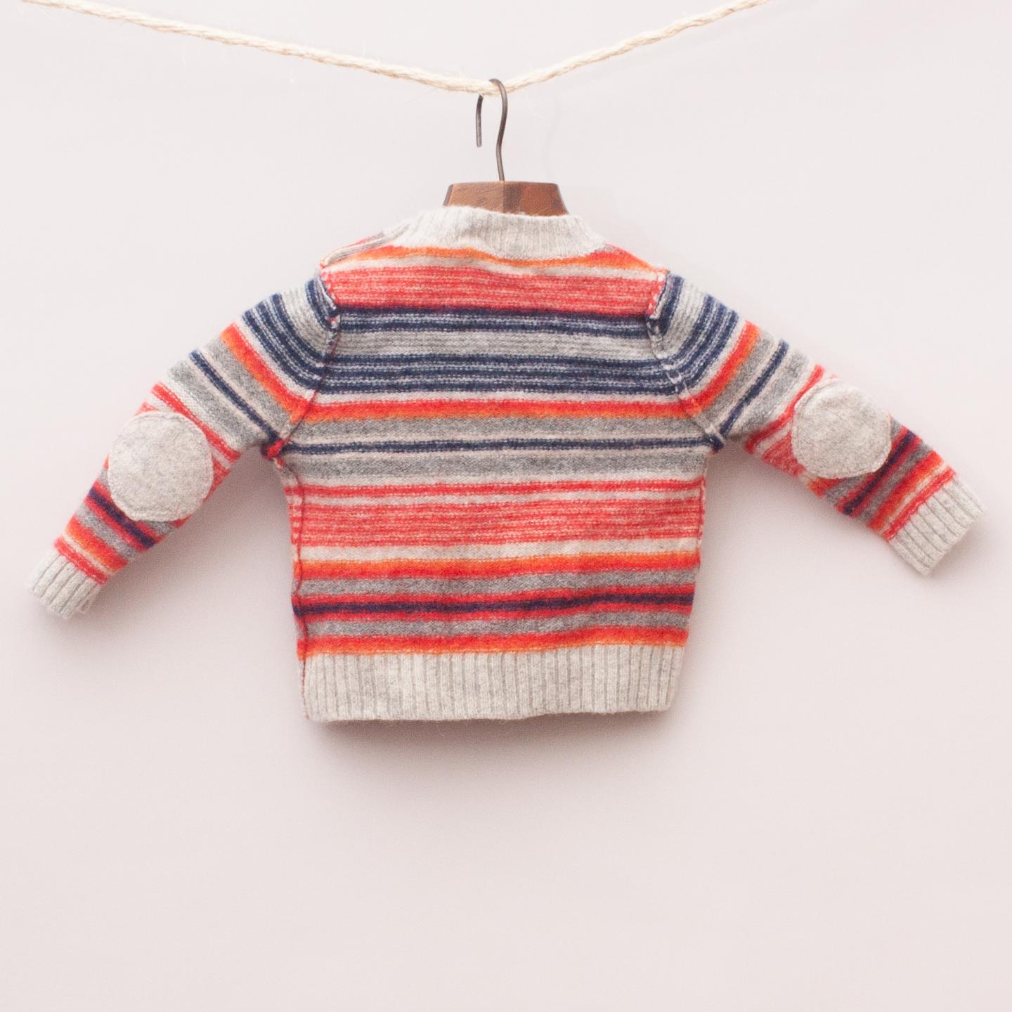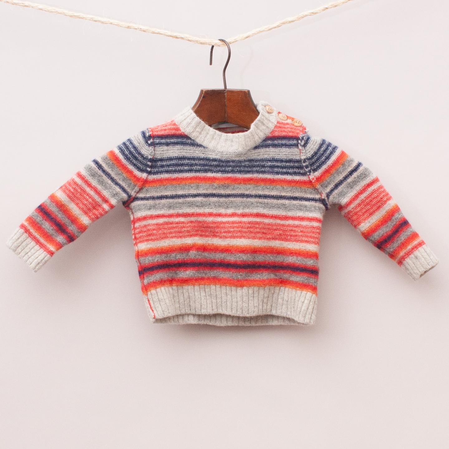 Country Road red, grey and blue striped jumper with ribbed cuffs and waistband with shoulder button closure *100% Wool