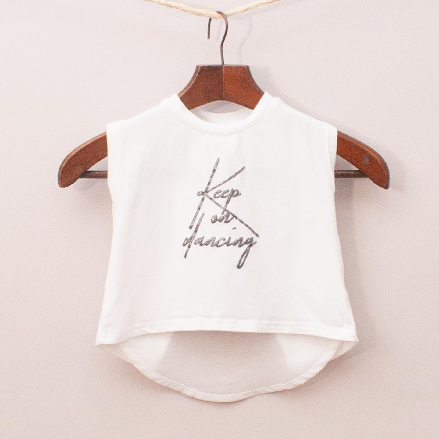 Cracked Soda white tank top with sheer back detail and printed glitter slogan on the front *95% Cotton, 5% Elastane