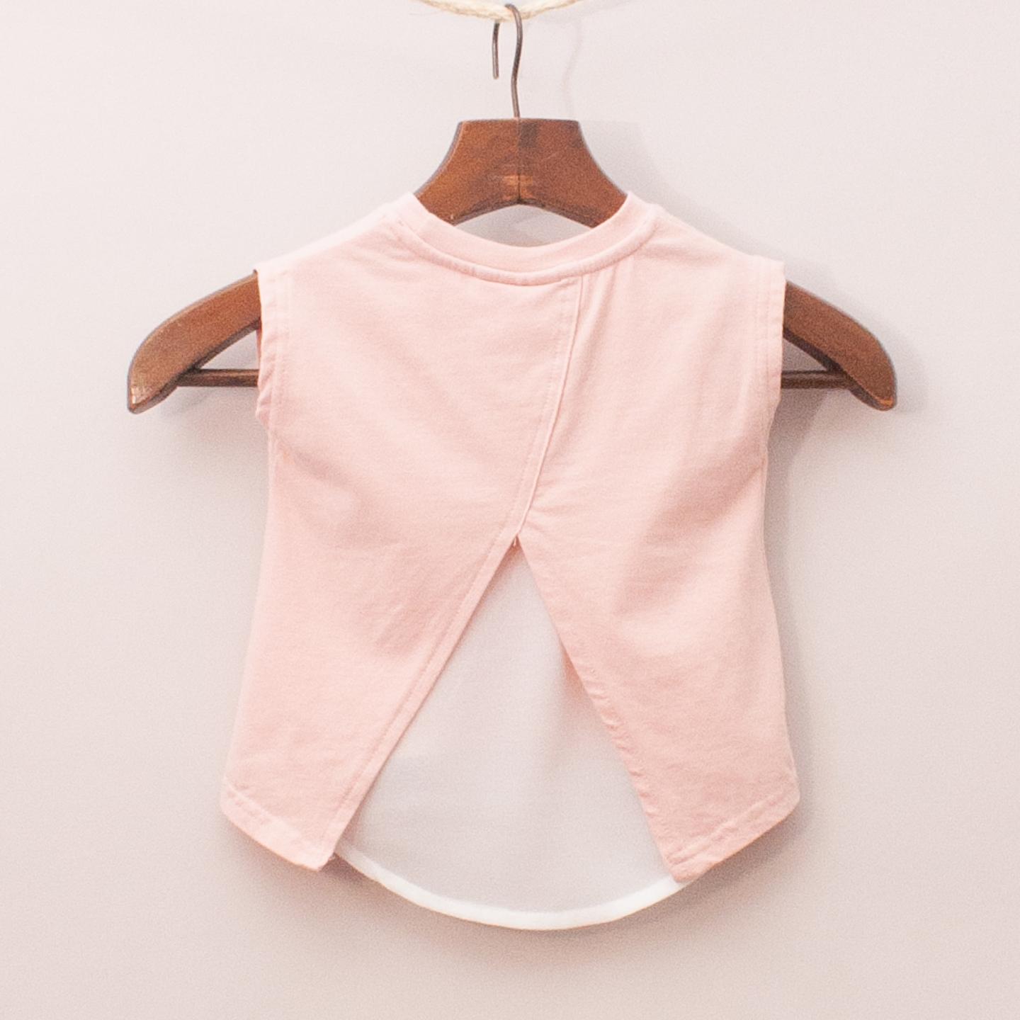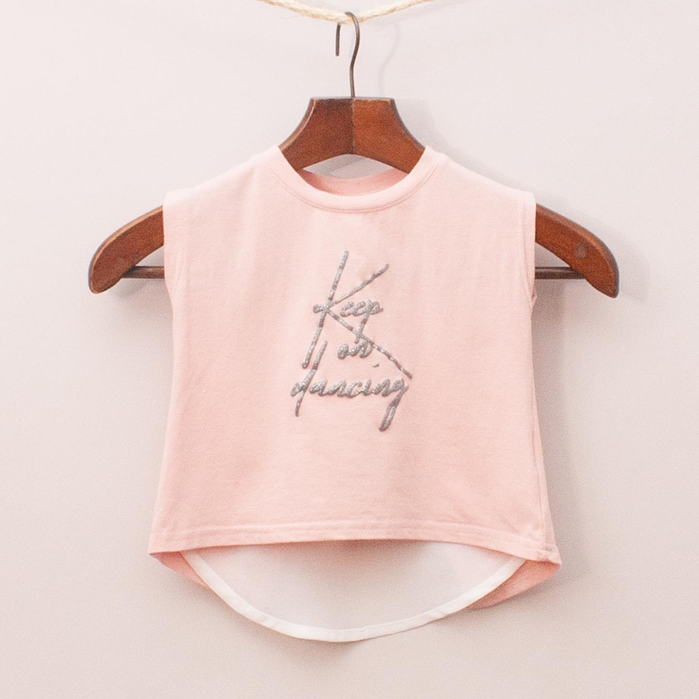 Cracked Soda pastel pink tank top with sheer back detail and printed glitter slogan on the front *95% Cotton, 5% Elastane