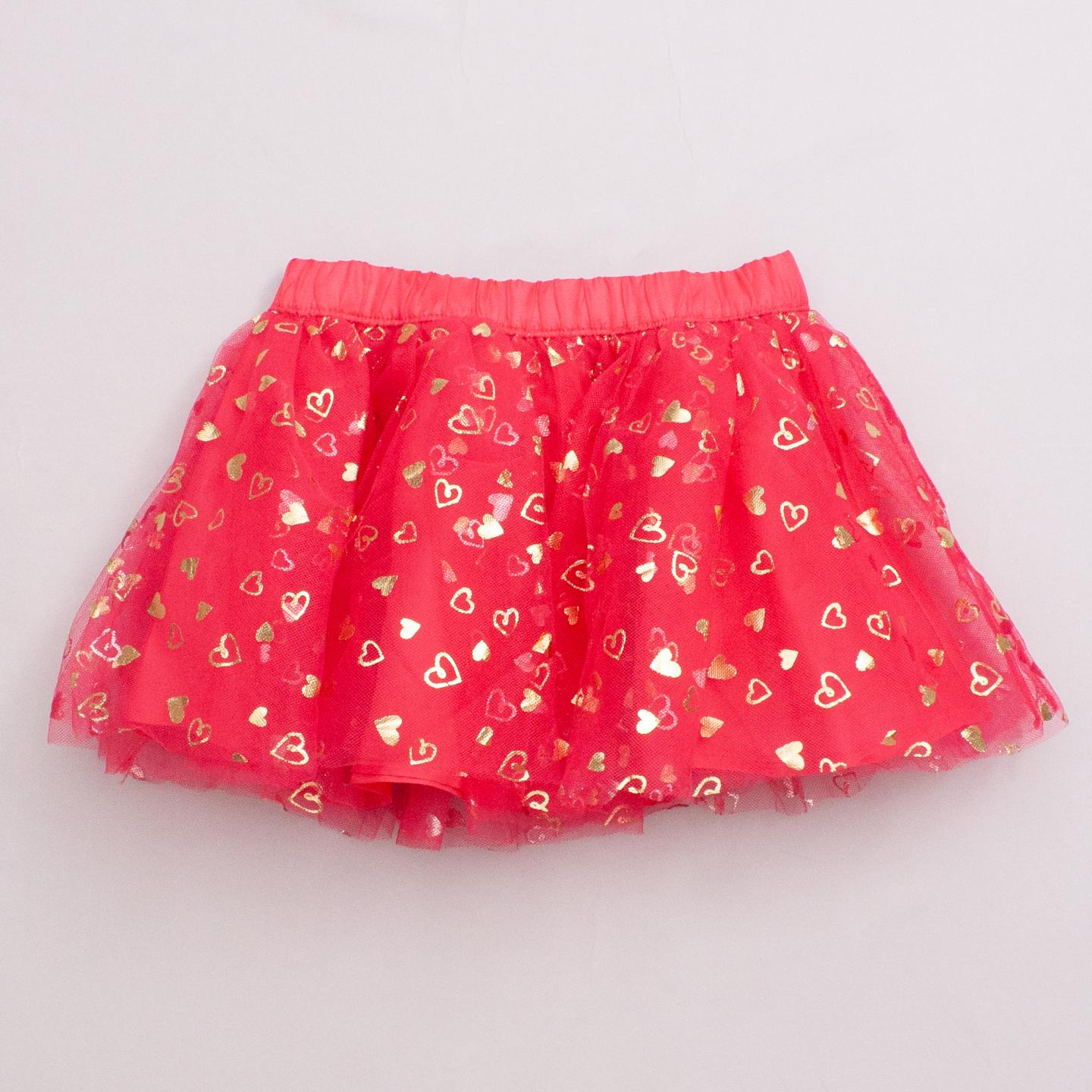 Crazy8 "brand new with tags" red tulle skirt fully lined with gold heart pattern throughout and elastic waistband - Marked 18-24Mths *100% Polyester