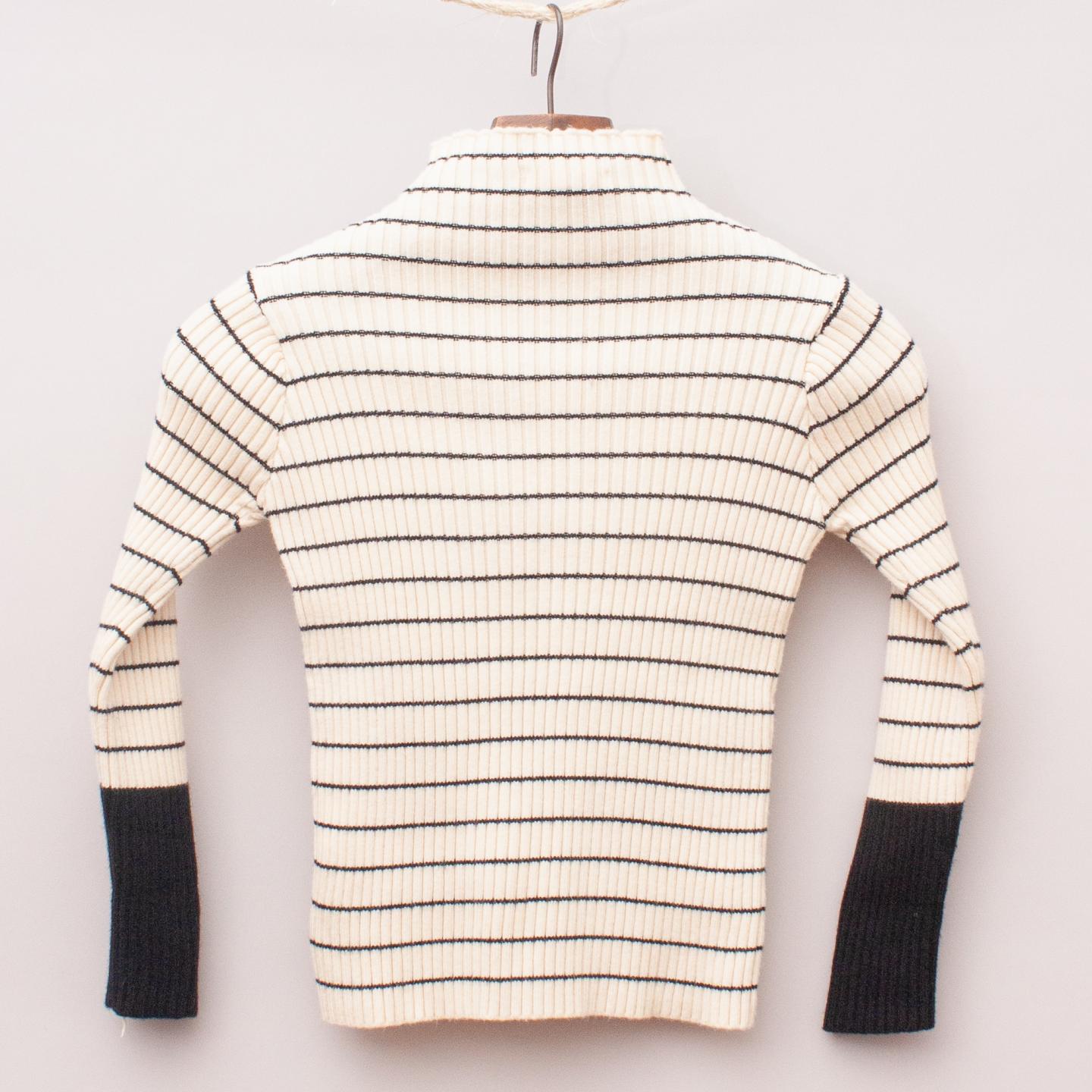 Cream Kids cream and black striped ribbed long sleeve with high neck collar and black cuffs