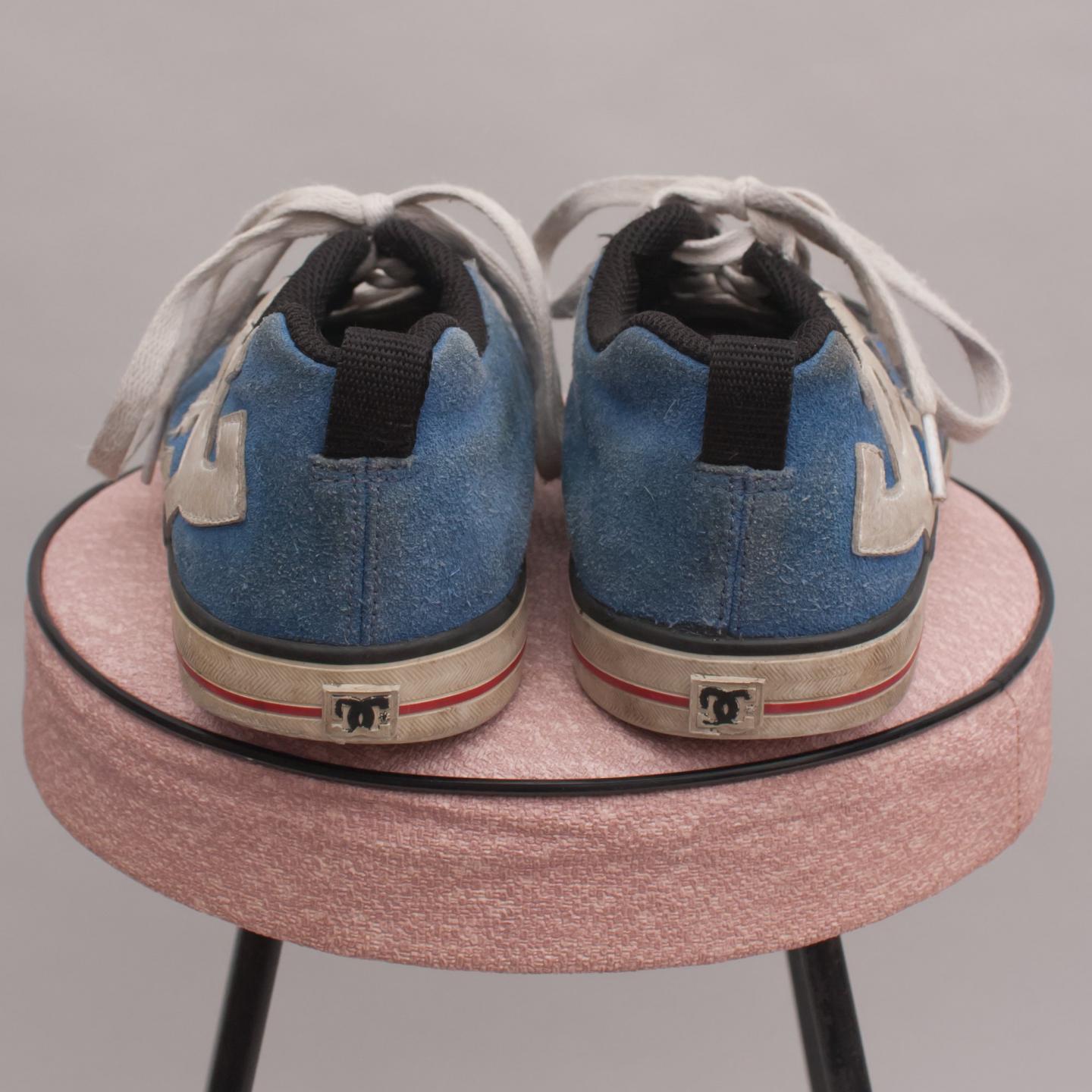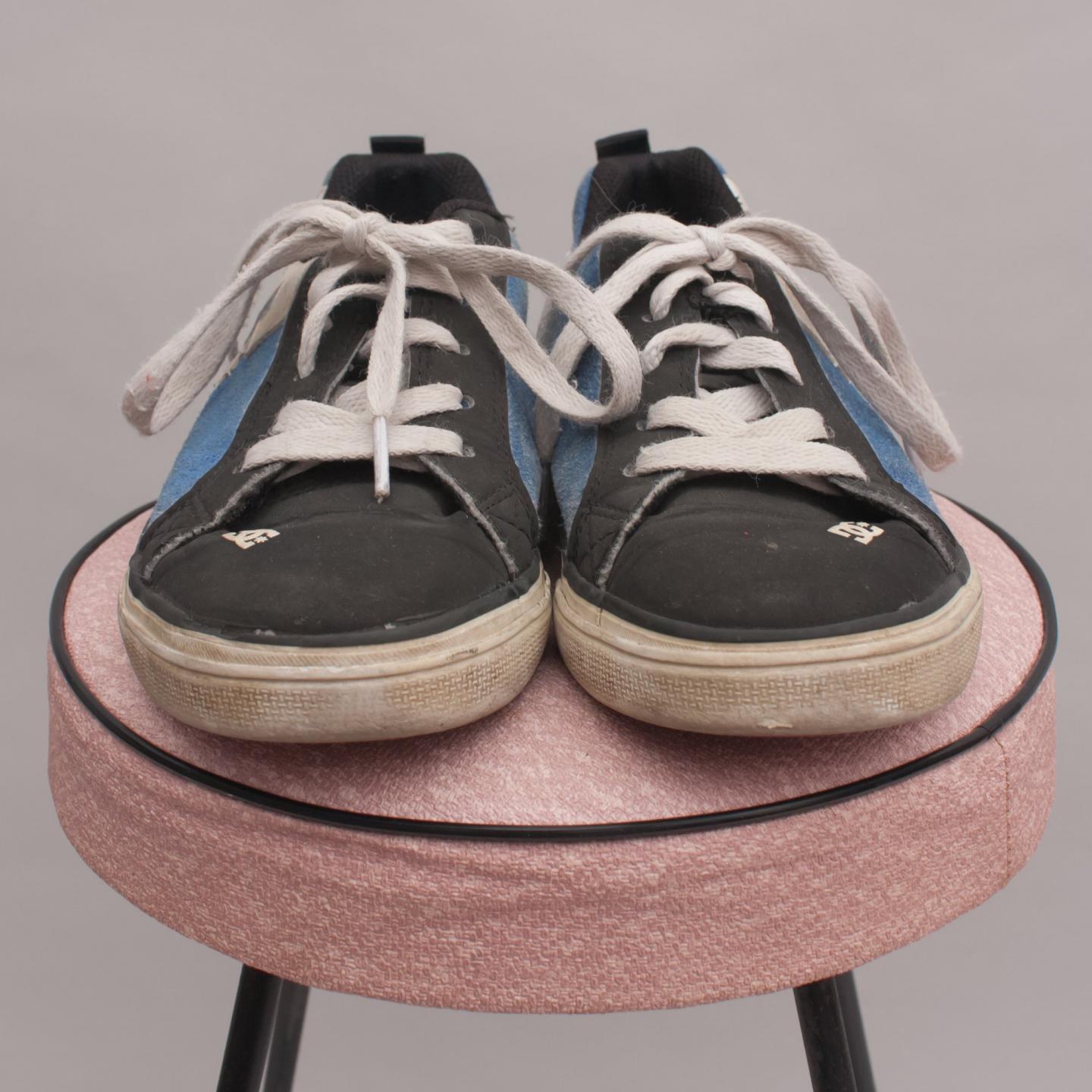 DC black and blue street shoes with large embroidered logo on the side, white laces and sturdy rubber soles - Size EU 33 (Age 6 Approx.)