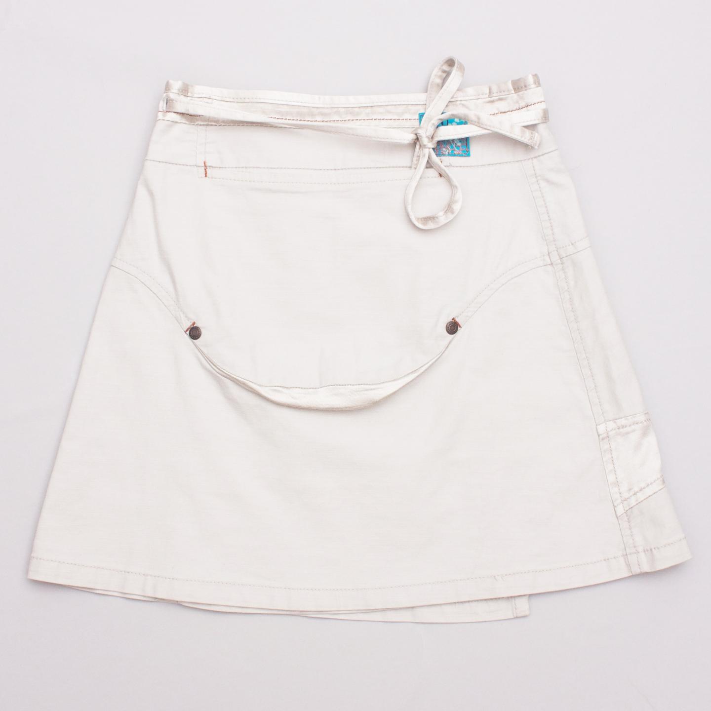 DKNY light grey cross-over skirt with satin details throughout, button back embellishments and large central front pocket
