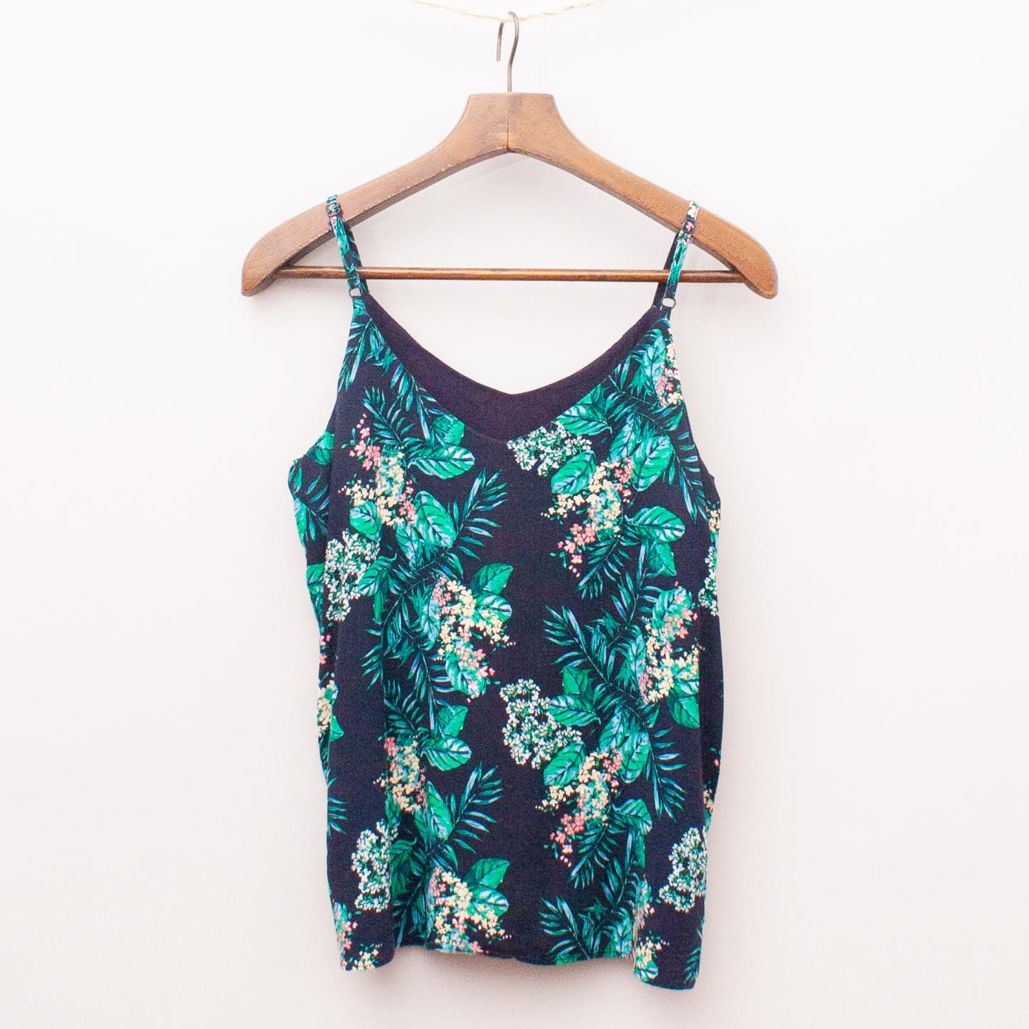 Decjuba black singlet with floral pattern throughout, v-neckline and adjustable straps