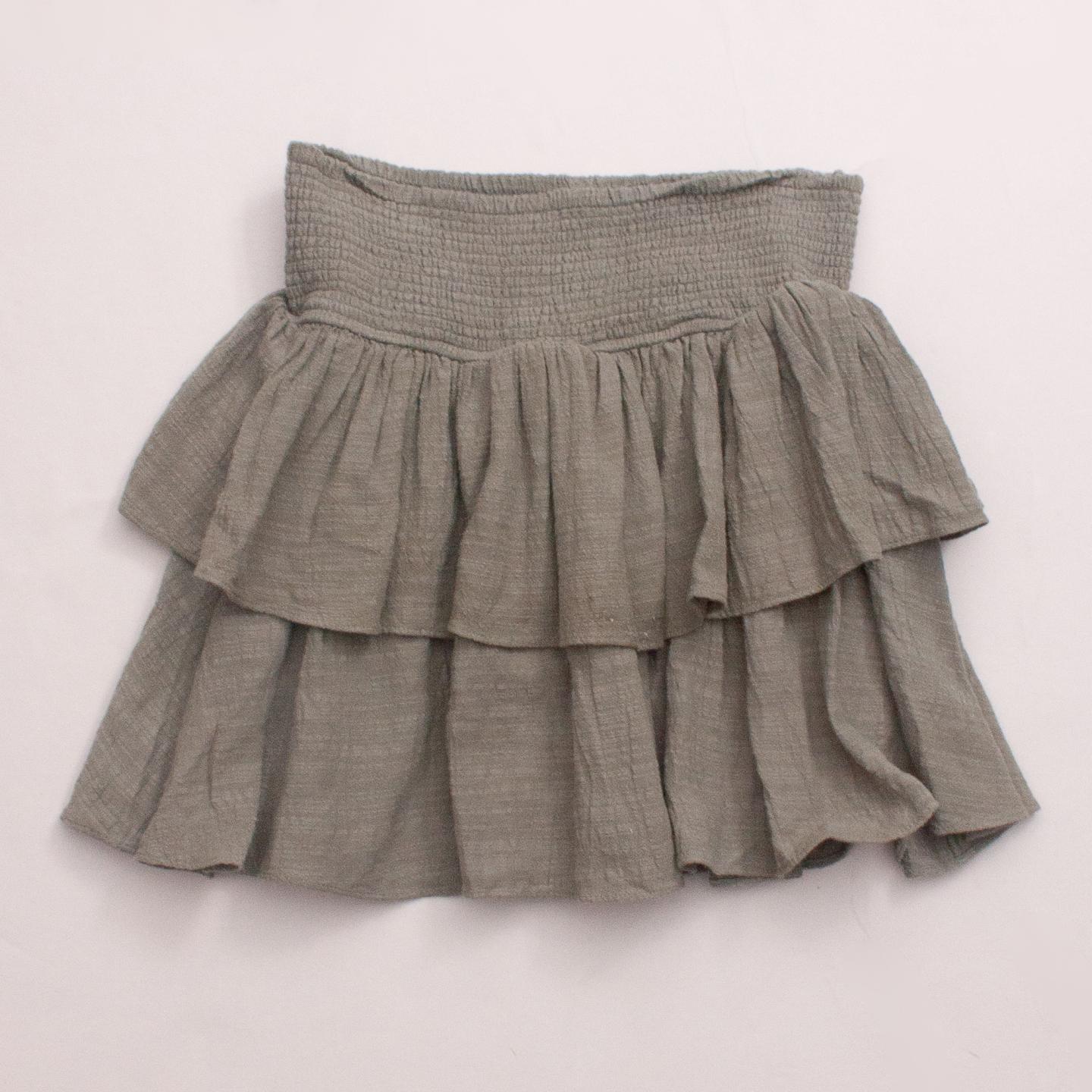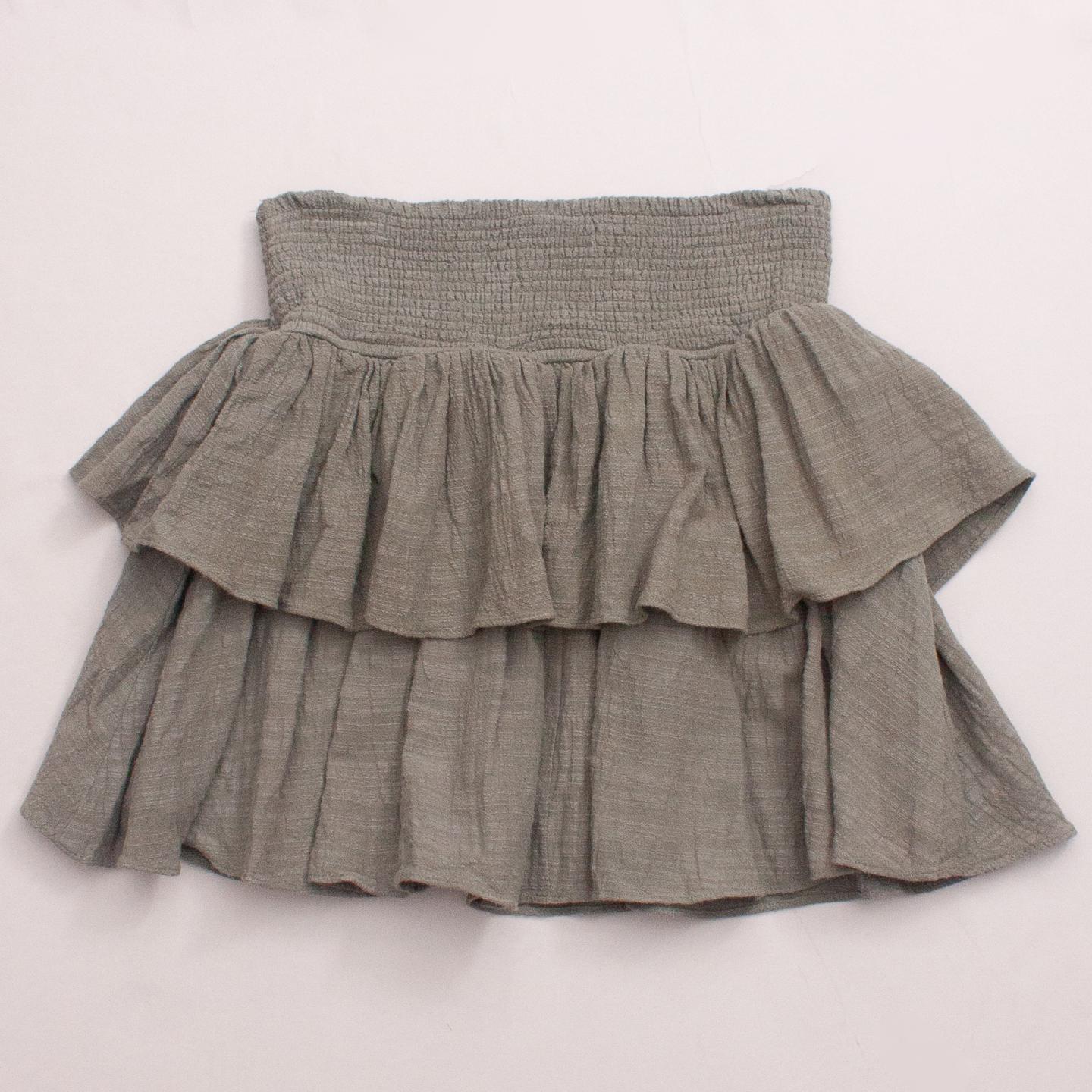 Decjuba khaki layered skirt with gathered elastic waistband *65% Viscose, 35% Cotton