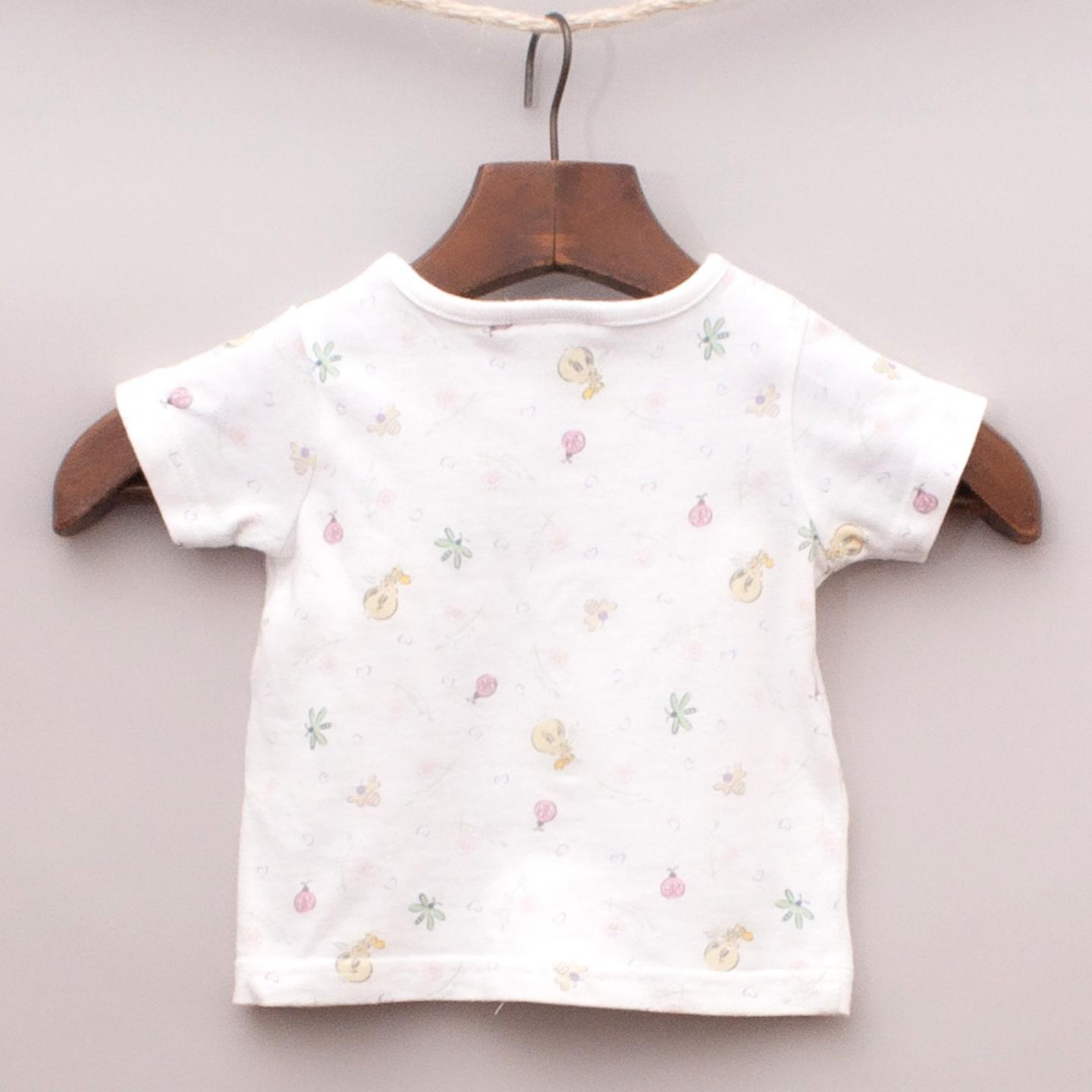 Disney white t-shirt with tweety bird and floral pattern throughout