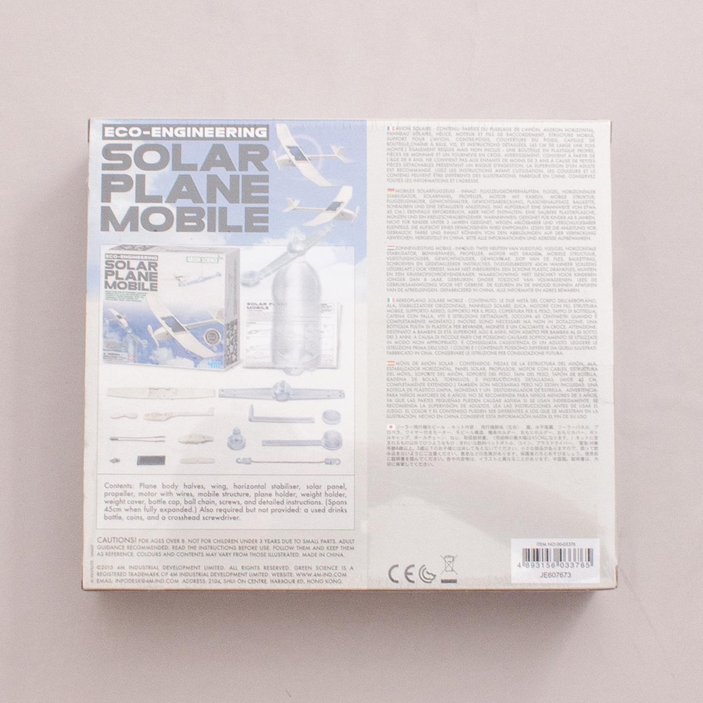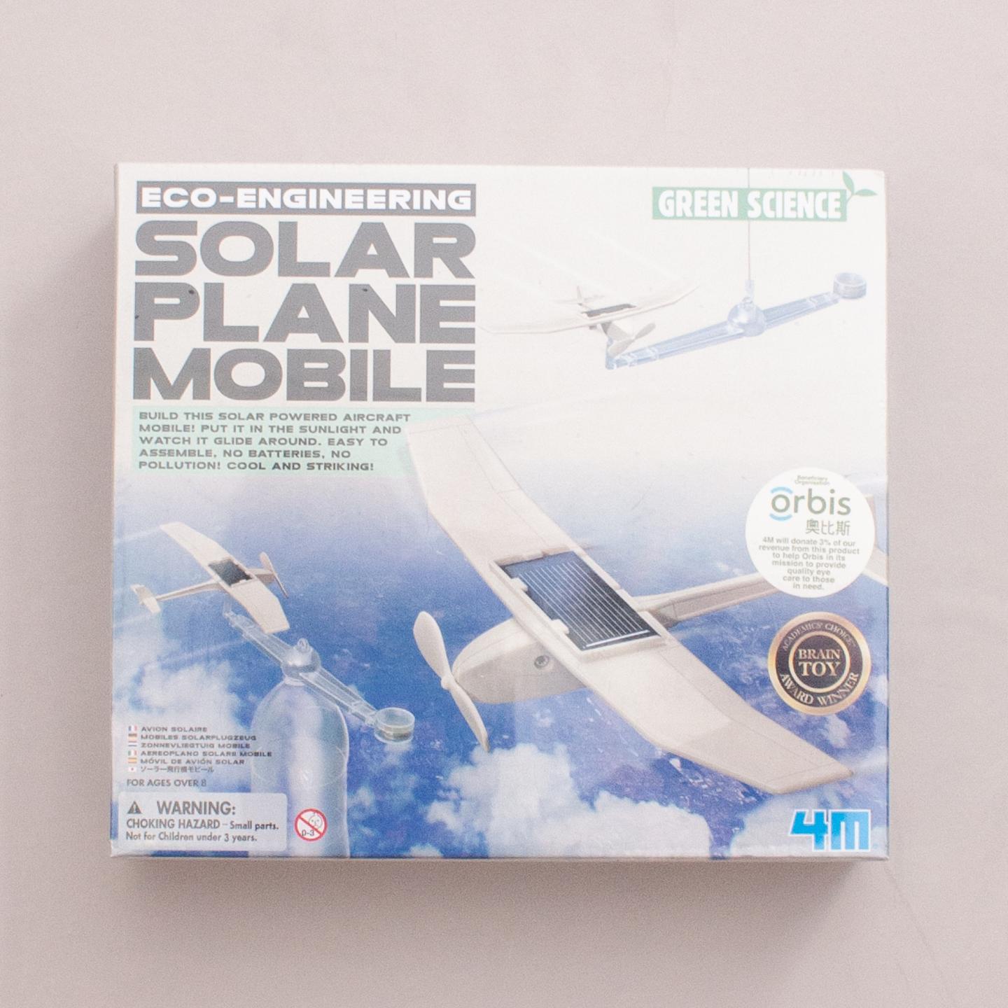 Eco-Engineering Solar Plane Mobile kit, build this solar powered aircraft mobile! Put it in the sunlight and watch it glide around. Easy to assemble, no batteries needed, no pollution, cool and striking! Suitable for 8+