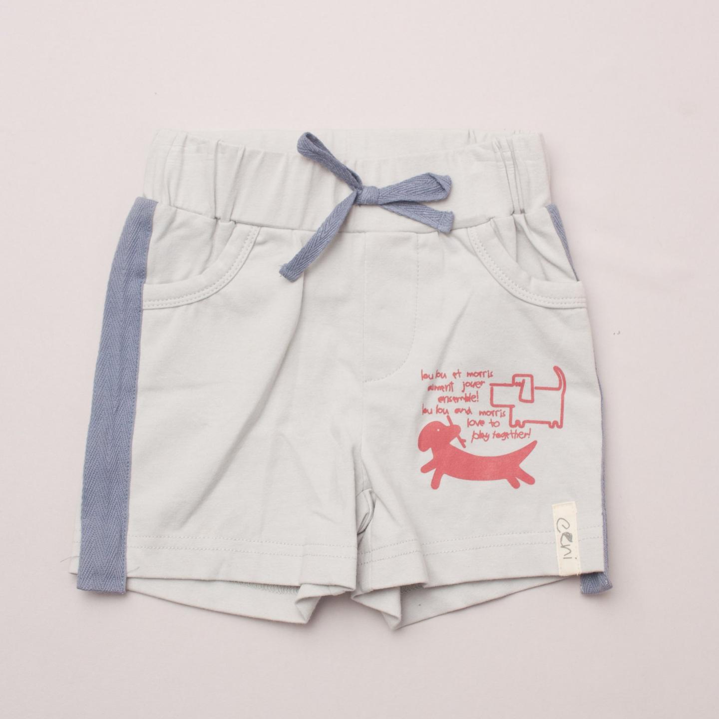 Eeni Meeni "brand new with tags" pastel blue shorts with grosgrain ribbon detail down the sides, two front pockets and elastic waistband
