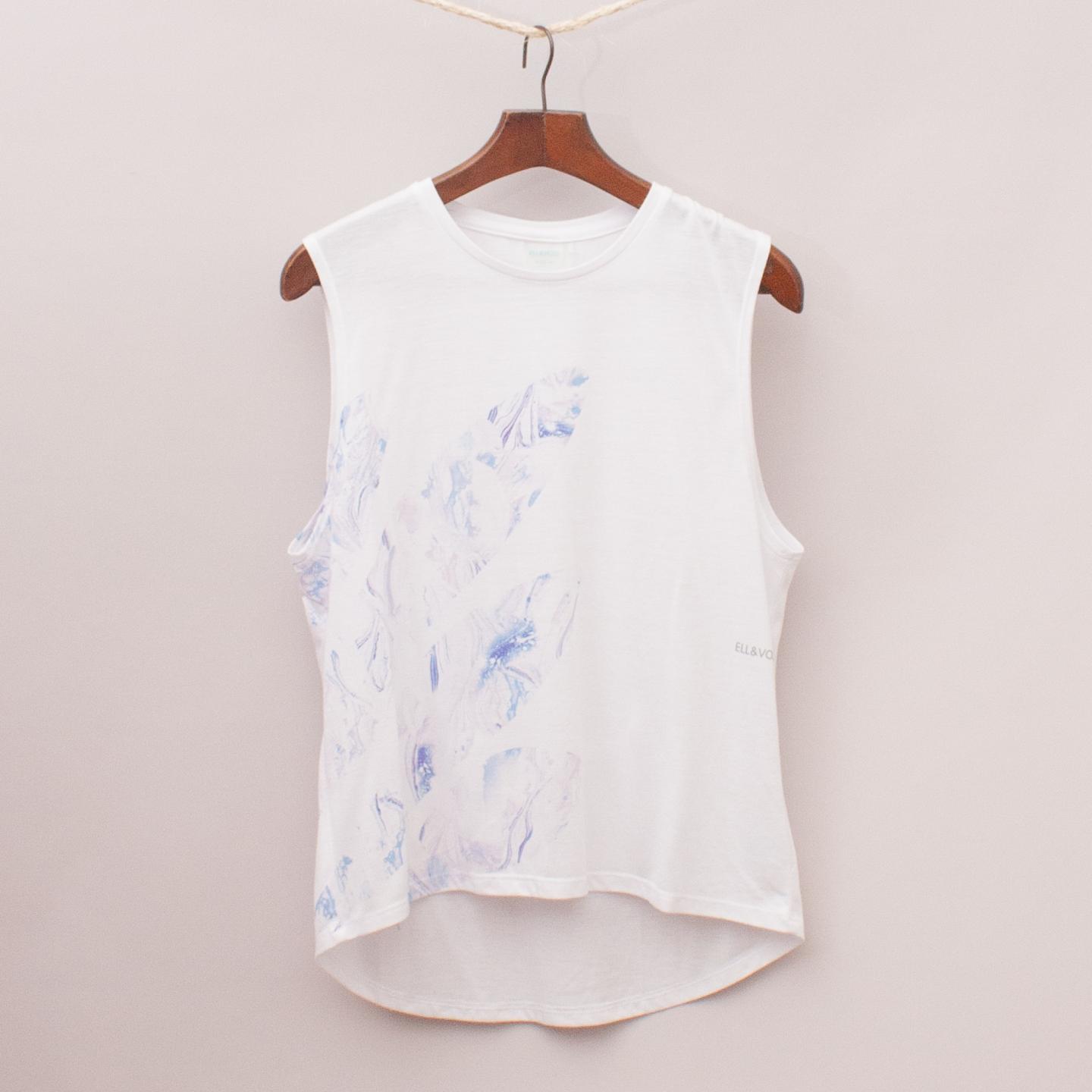 Ell&Voo white and light blue patterned singlet with high/low hemline *68% Viscose, 32% Polyester