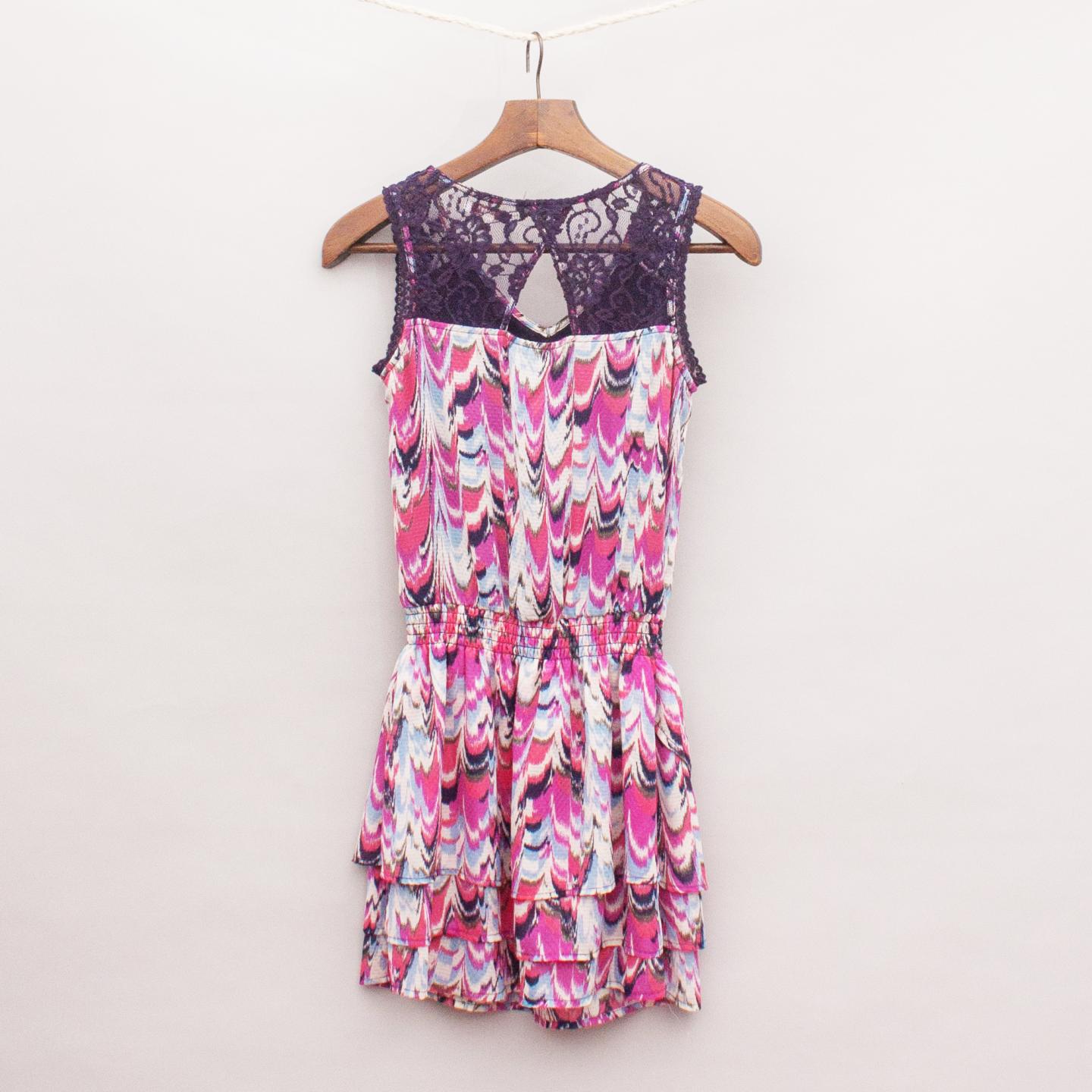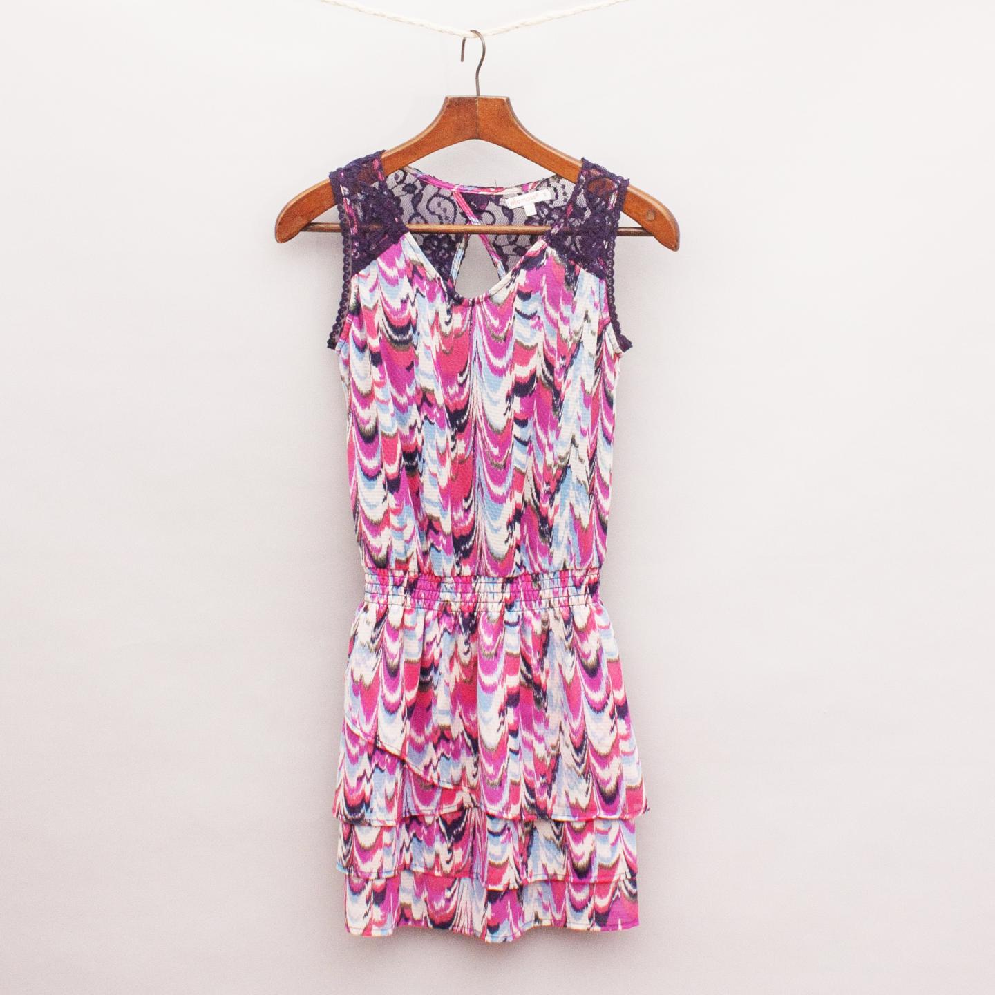 Ella Moss pink, purple and blue wave-like pattern with lace trim, elastic waistband and layered skirt