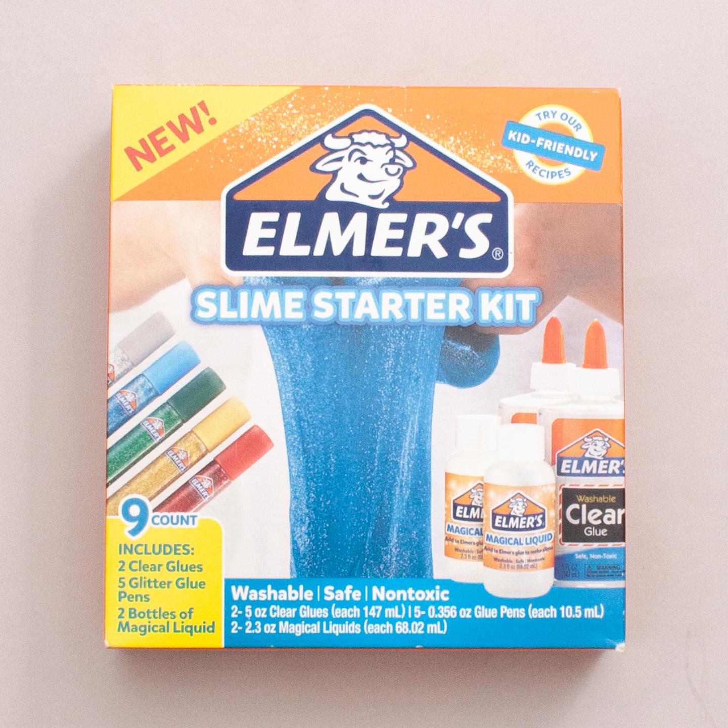 Elmer's Starter Slime Kit including; 2 clear glues, 5 glitter glue pens and 2 bottles of magic liquid - Suitable for 4+