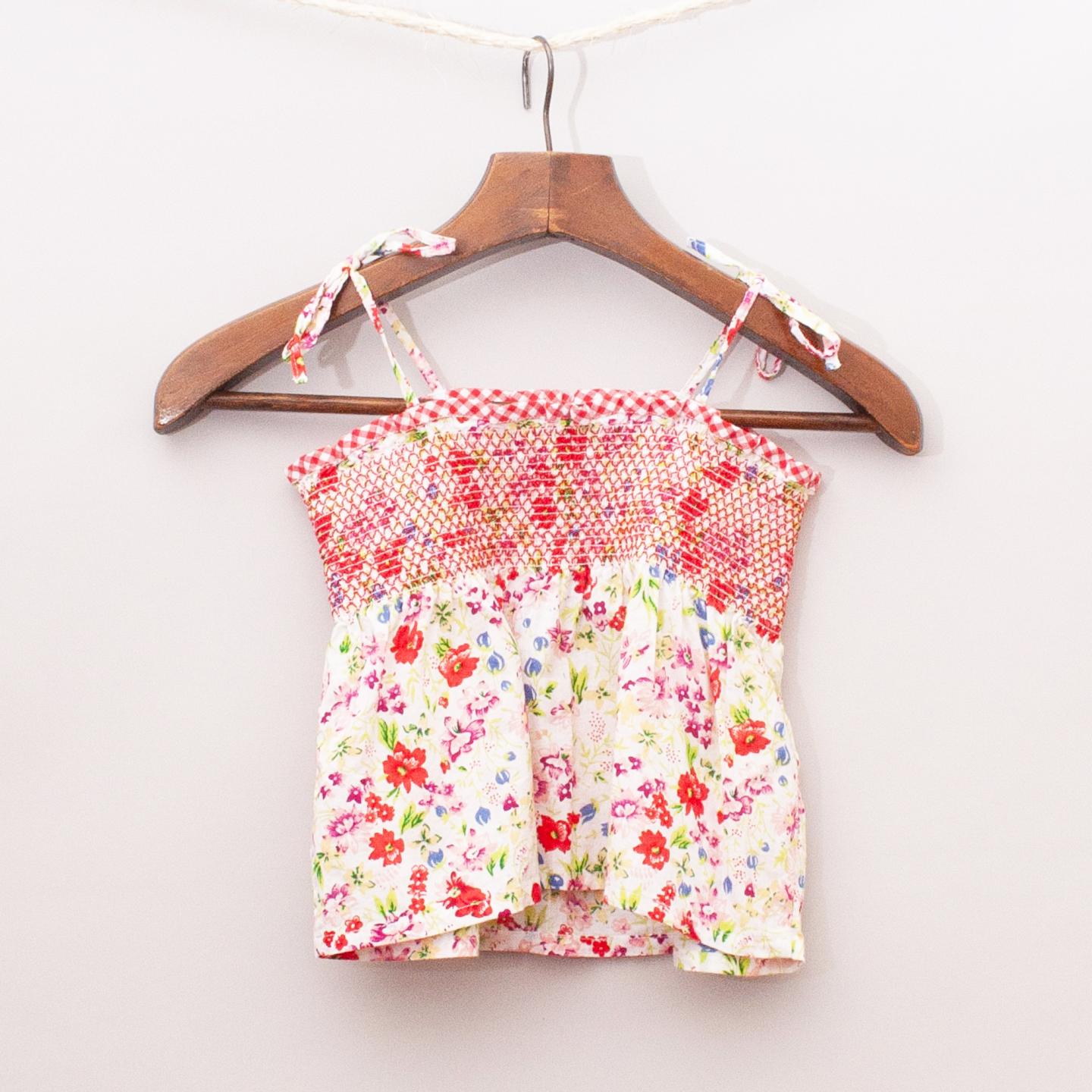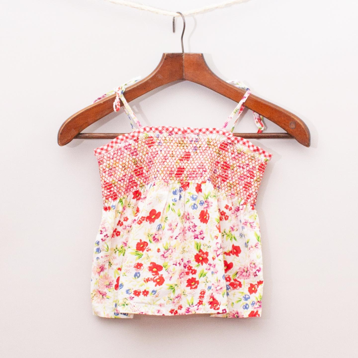 Esprit colourful floral print singlet top with gathered and elastic chest, gingham trim and tie up straps