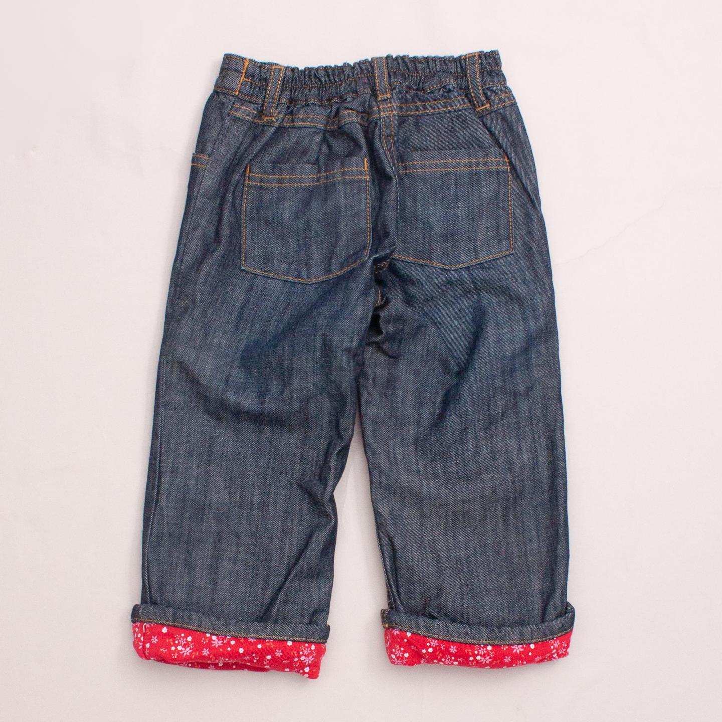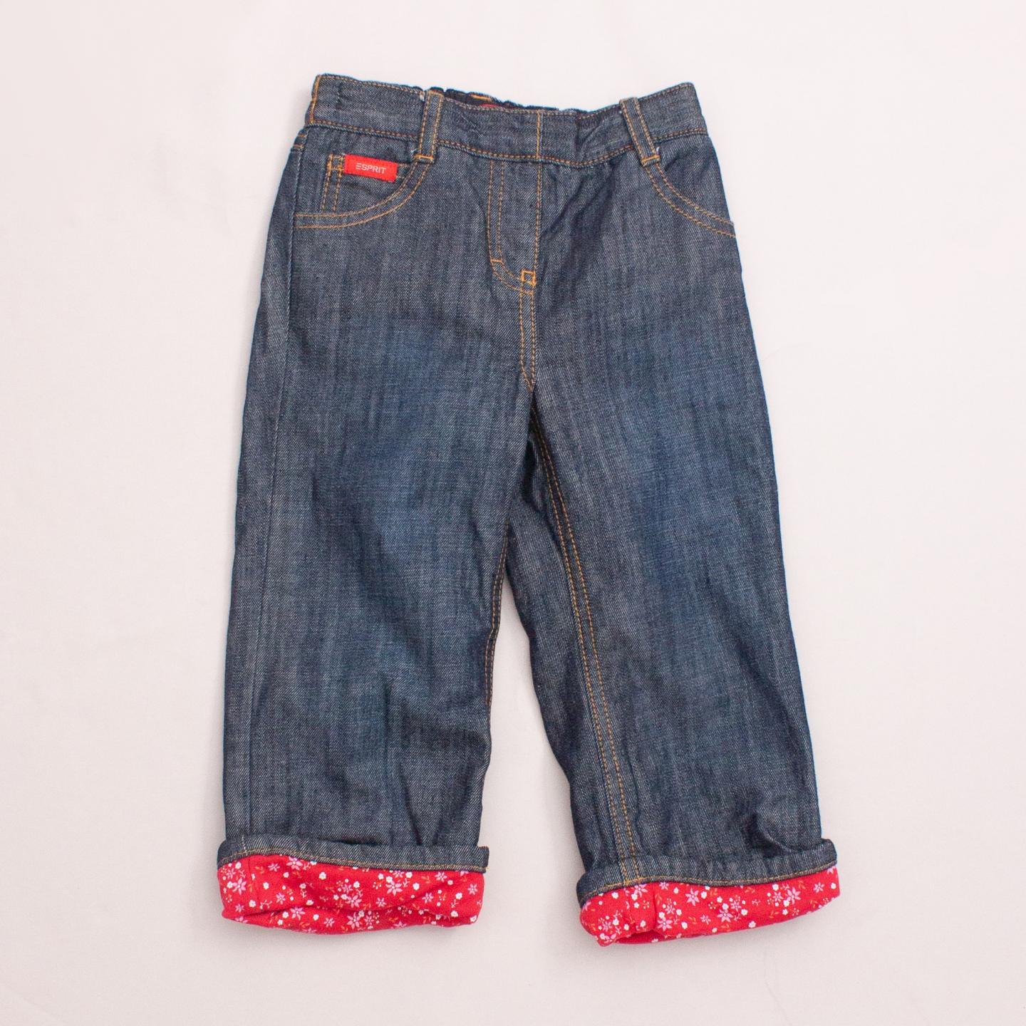 Esprit straight leg denim jeans with front and back pockets, rolled cuffs with floral pattern, belt loops and elastic waistband *100% Cotton