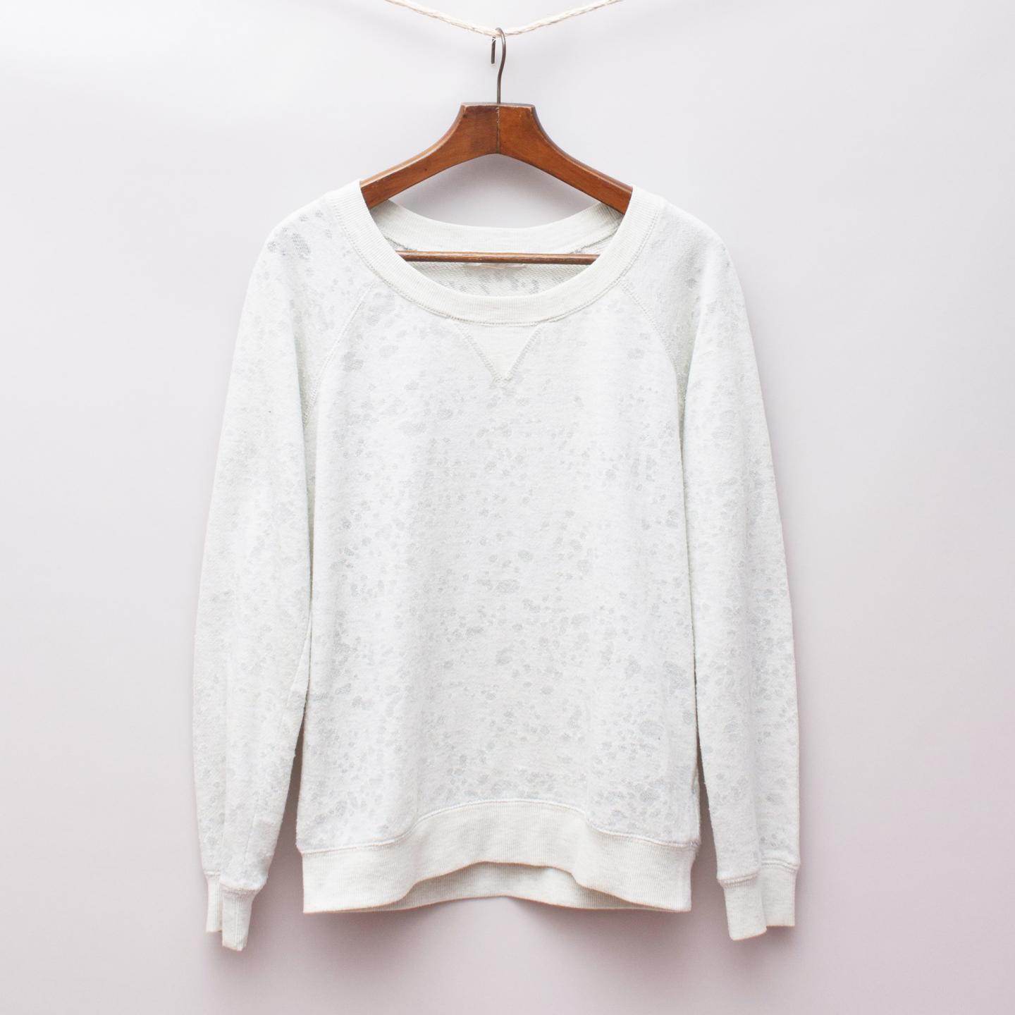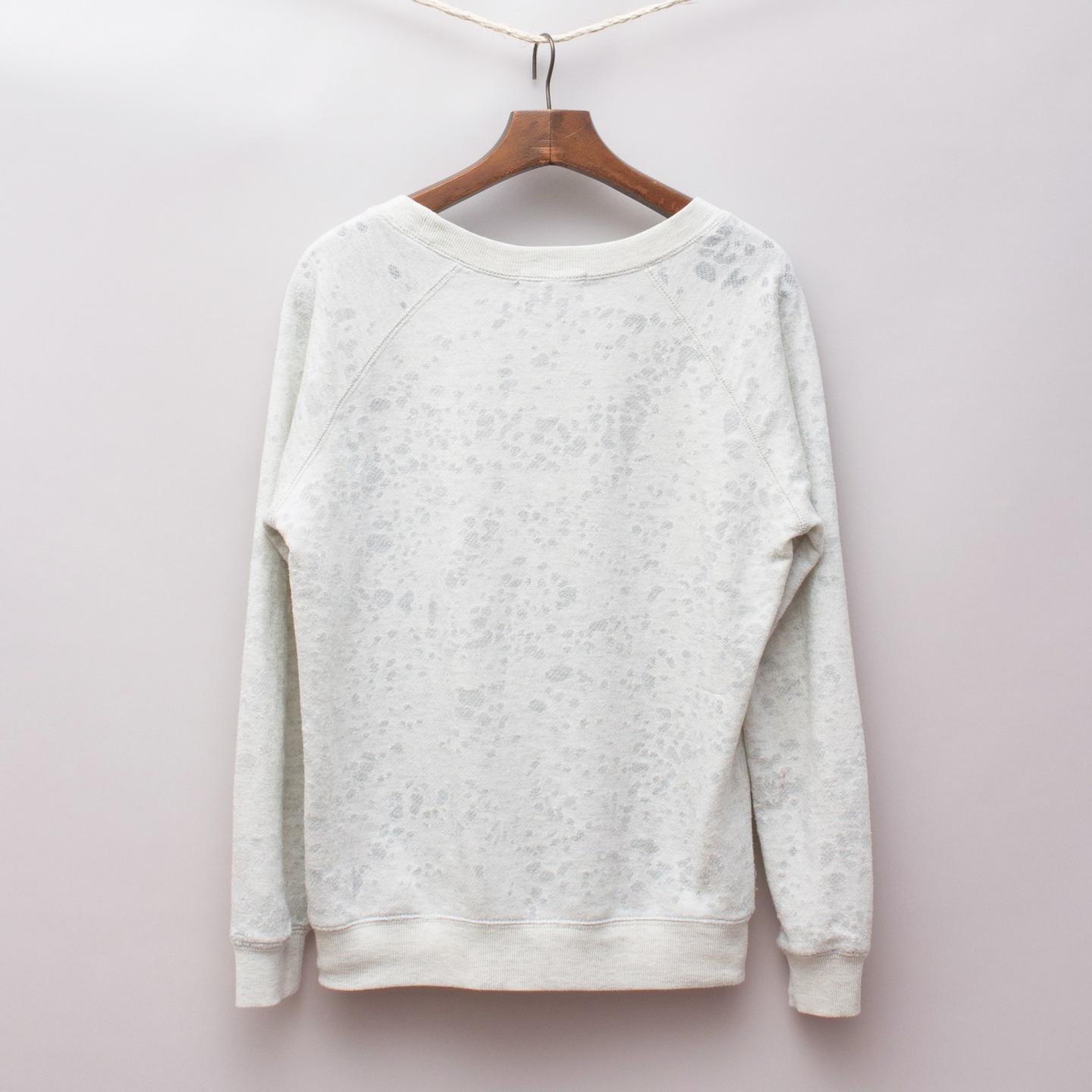 Forever 21 light grey sweatshirt style jumper with burnout detailing, crewneck and ribbed neckline, cuffs and waistband