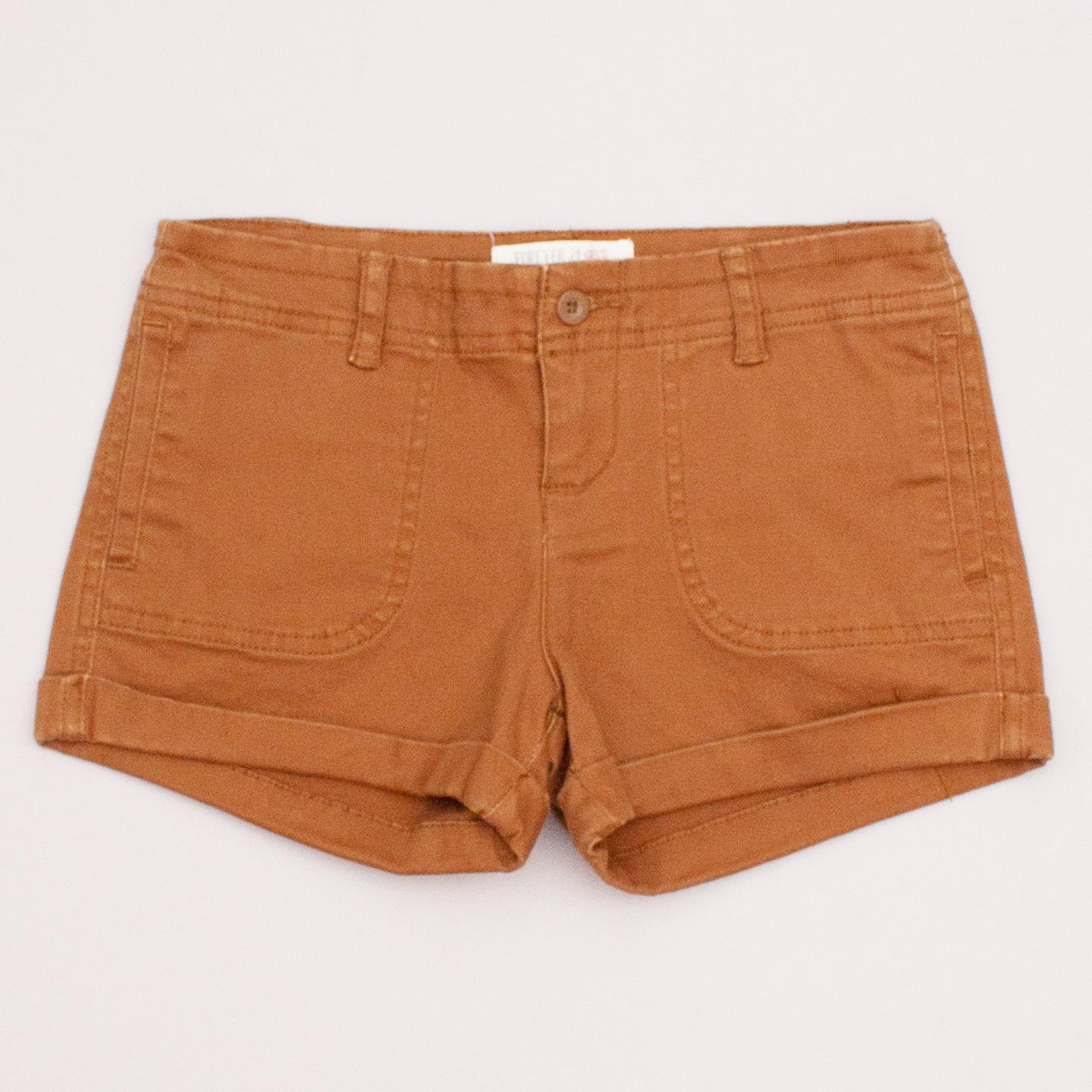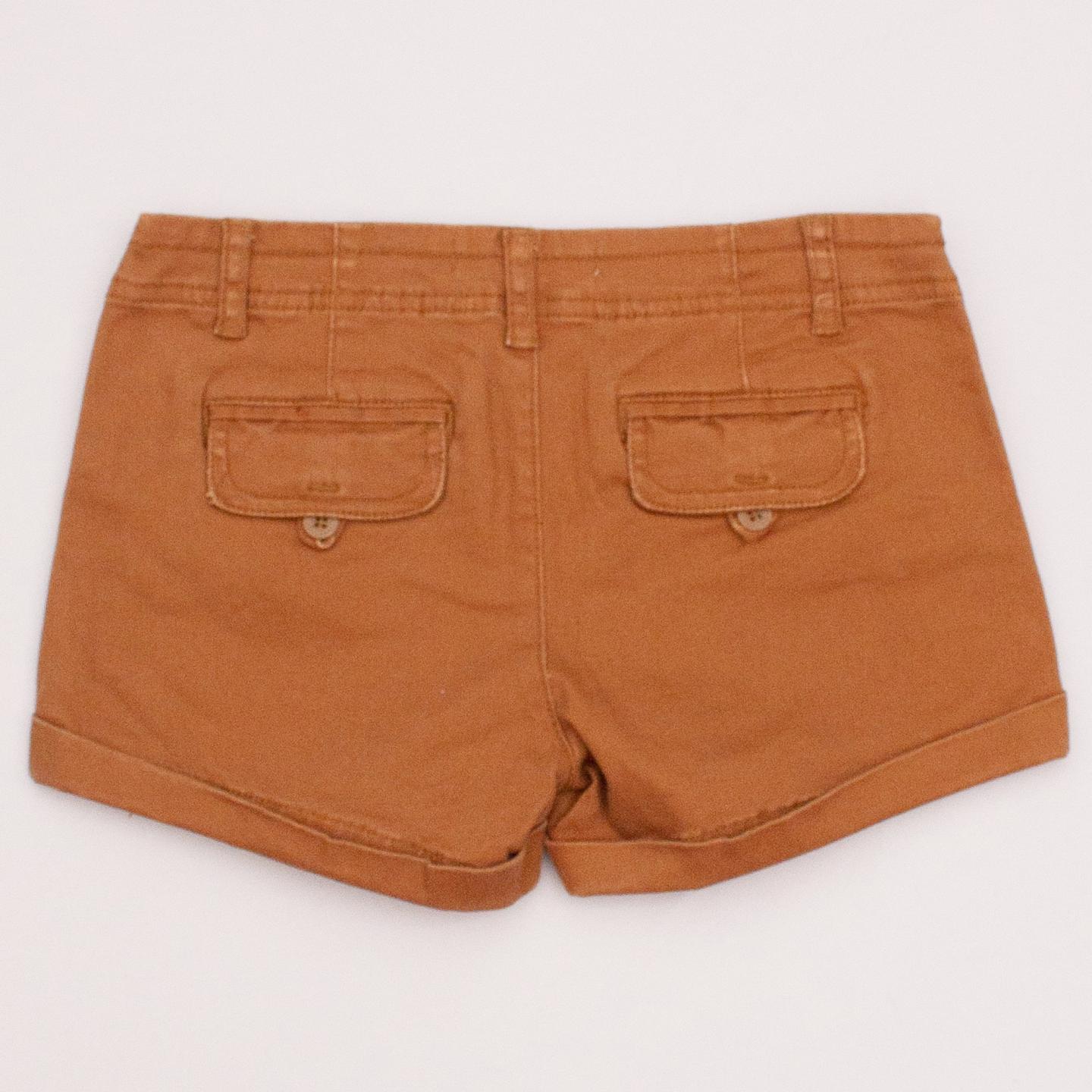 Forever 21 khaki coloured shorts with rolled cuffs, front and back pockets, belt loops and button/zip fastening