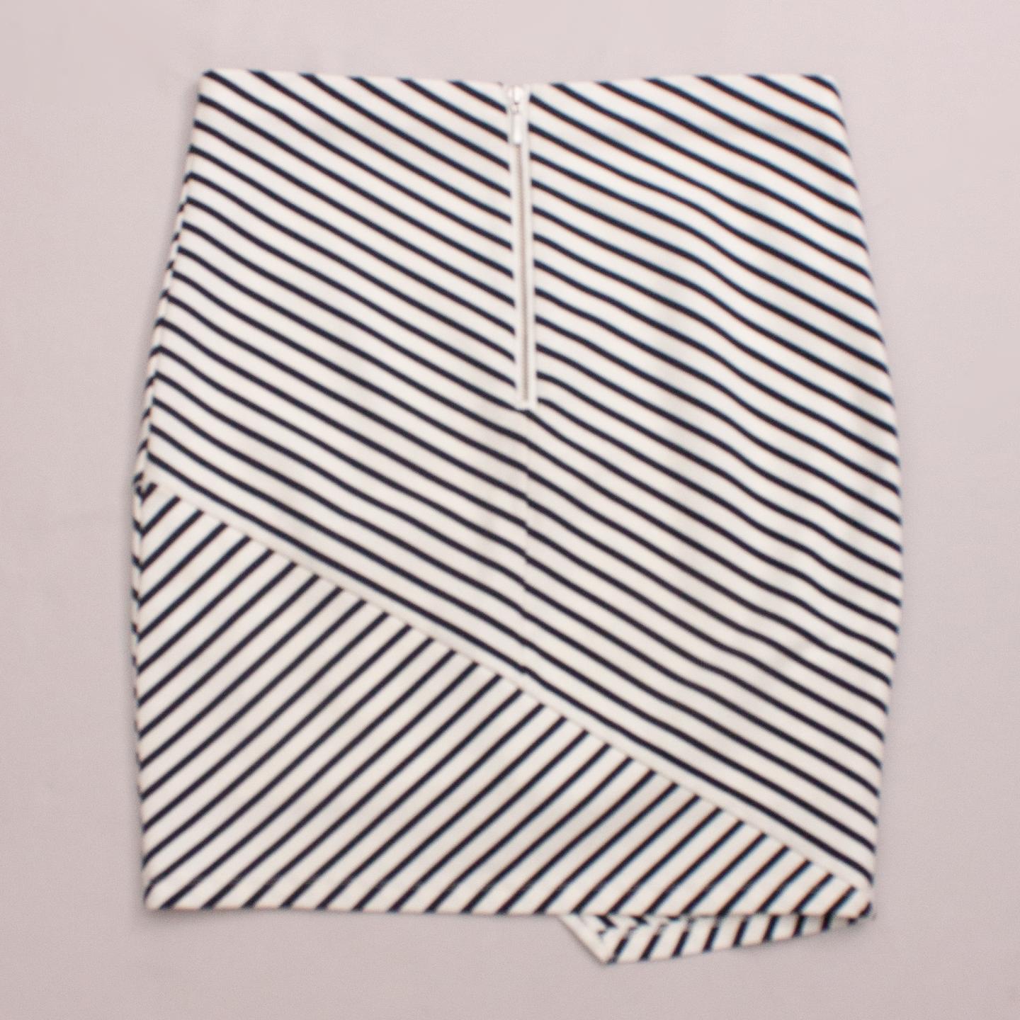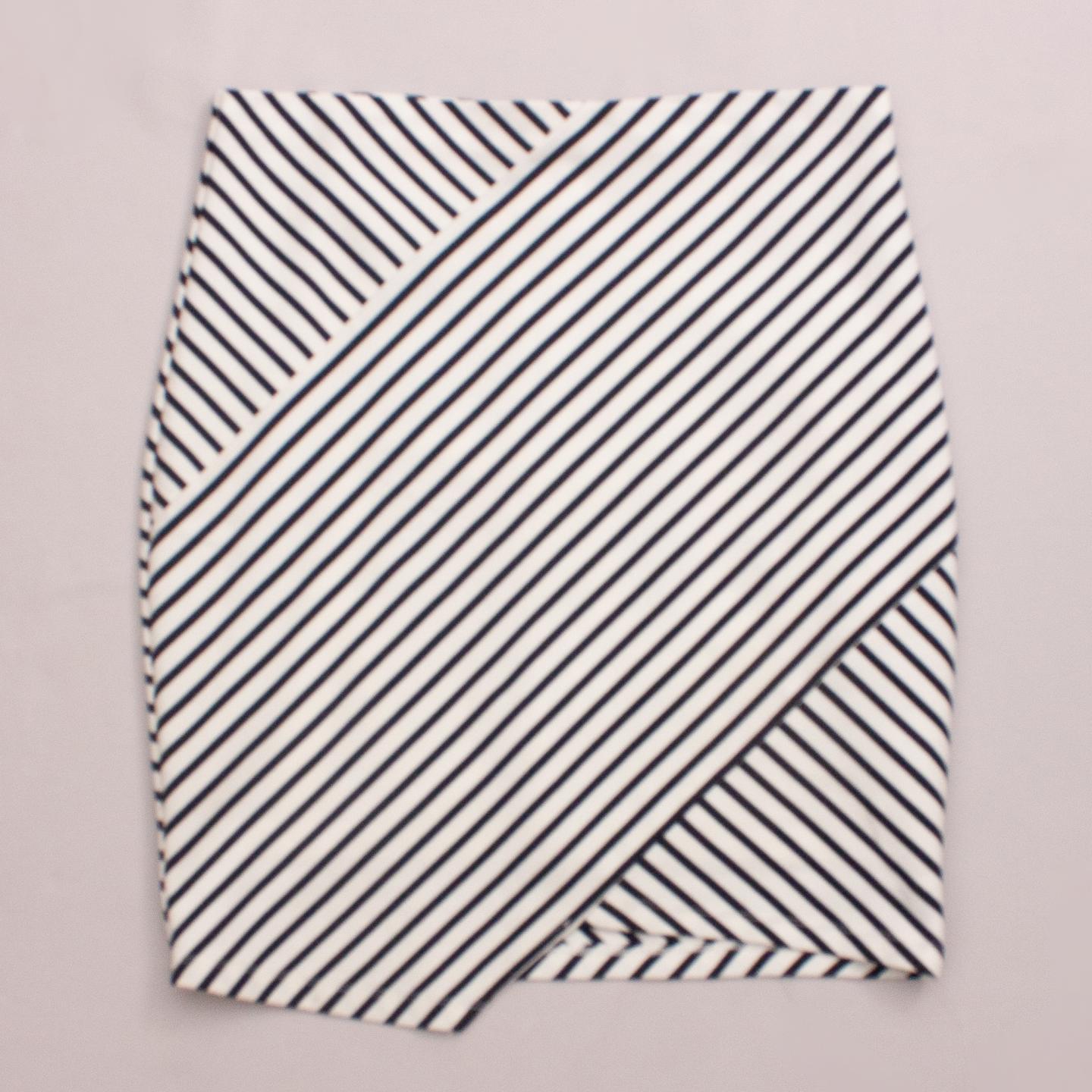 Forever New black and white striped stretch skirt with zip back closure - Marked as women's size 8 *65% Viscose, 30% Nylon, 5% Elastane