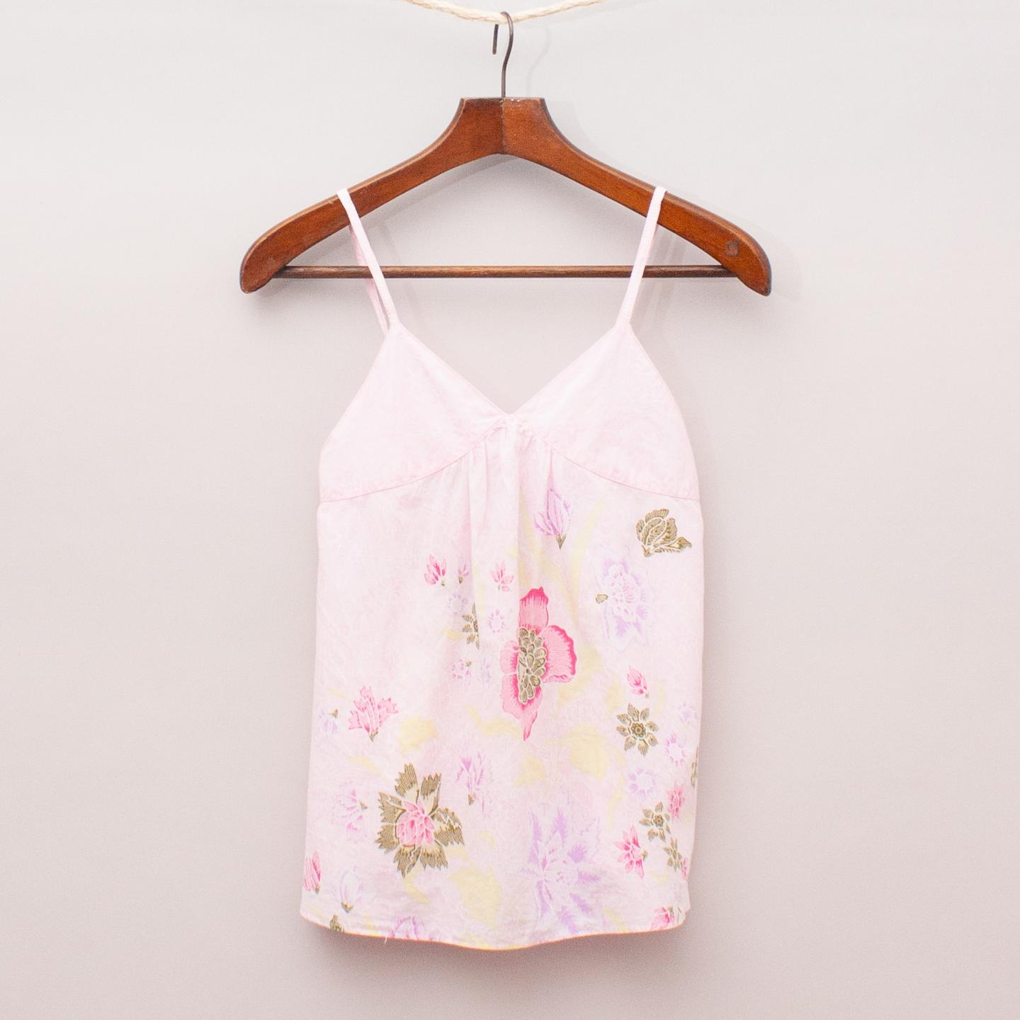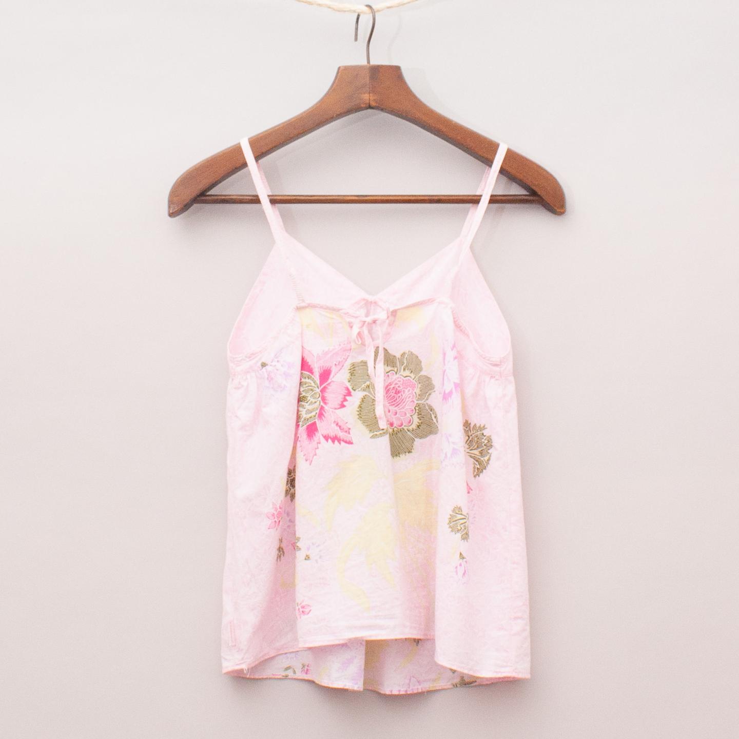 Fred Bare pastel pink patterned and floral singlet with floaty bodice and tie up back