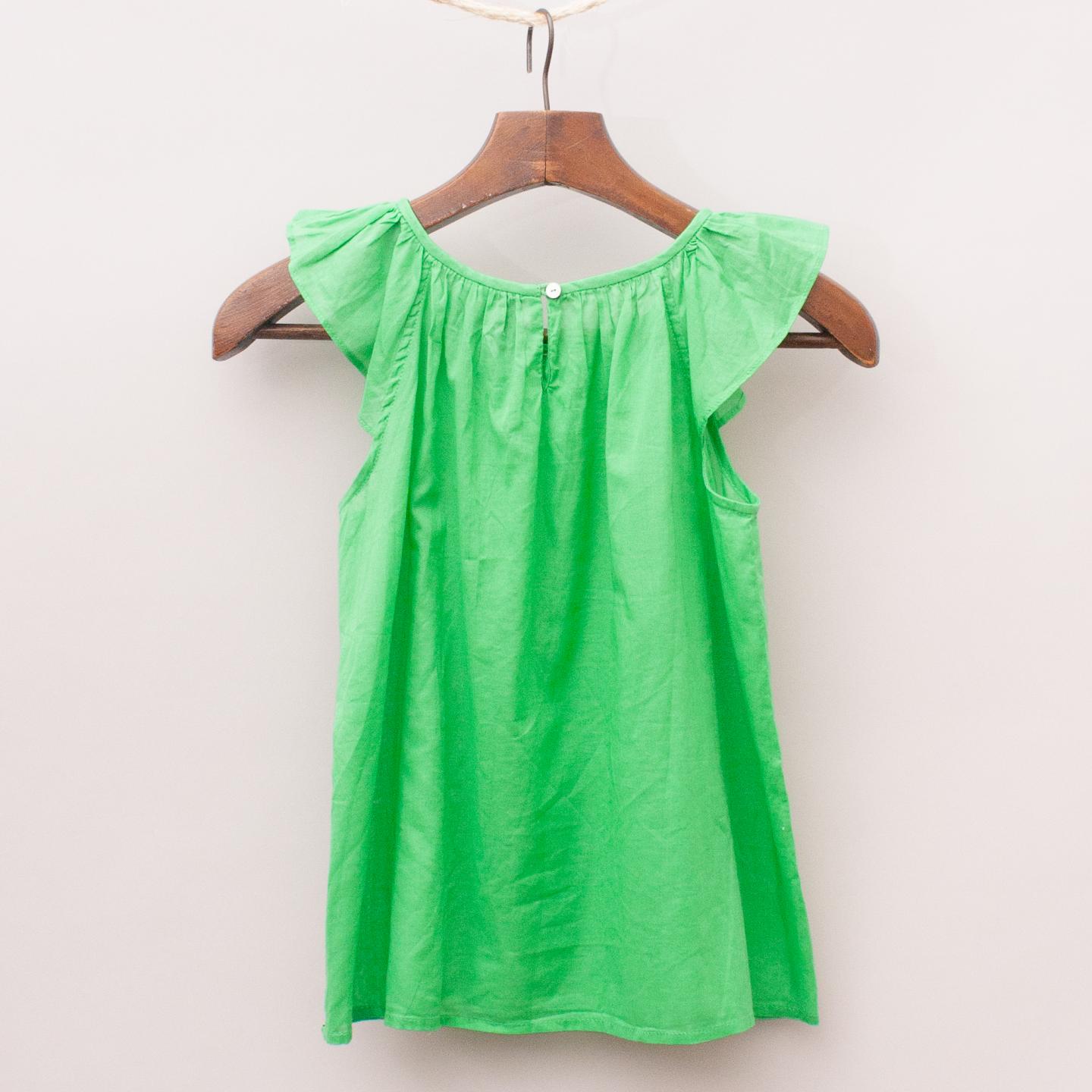 Fred Bare green lightweight singlet with ruffle sleeves and tie front *100% Cotton
