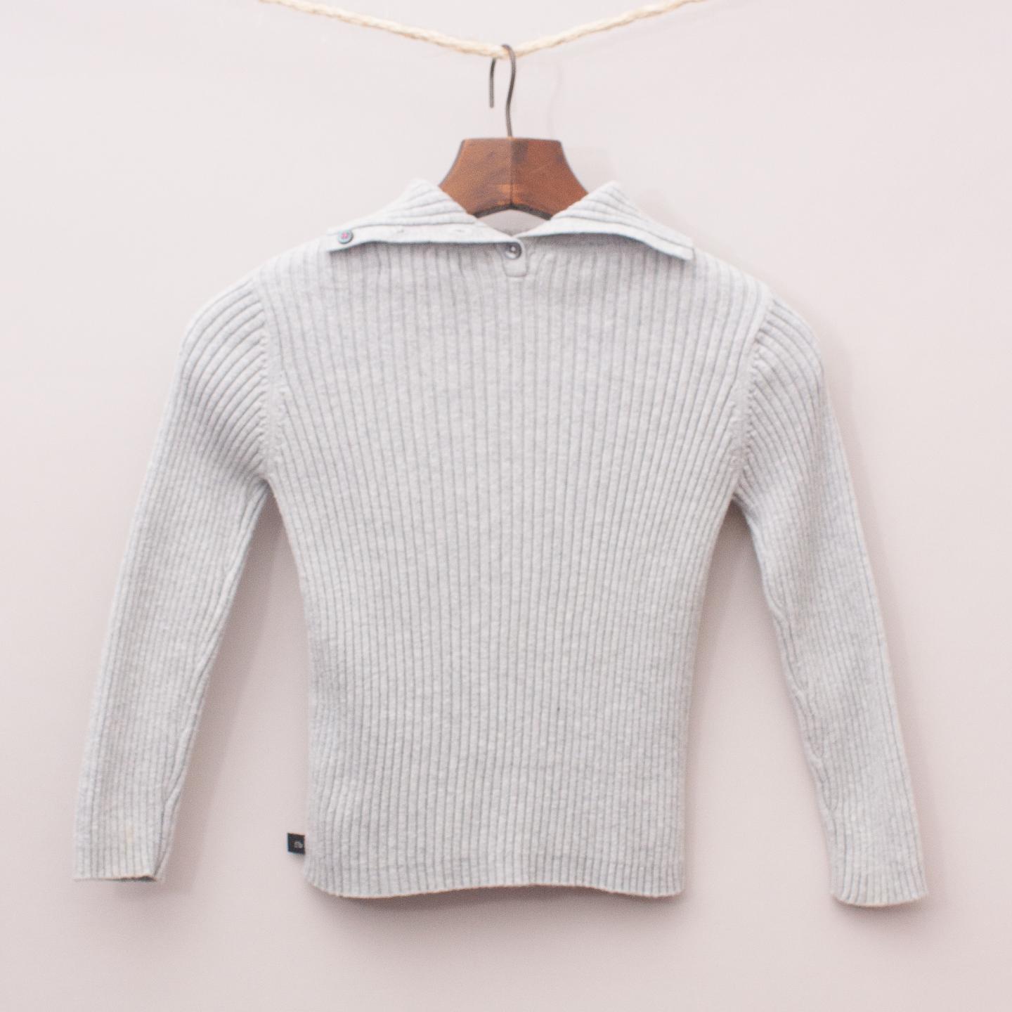 Fred Bare grey ribbed jumper with button detail rolled collar *100% Cotton