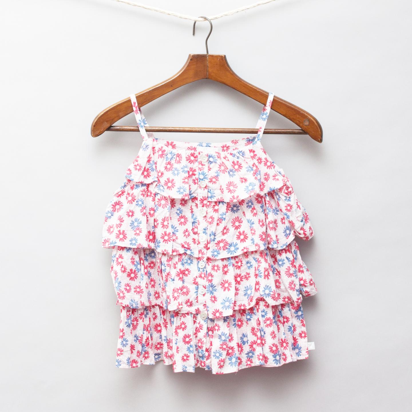 Fred Bare red and blue floral print ruffle singlet with full button down front