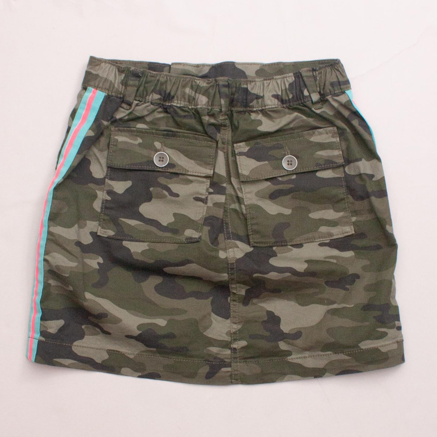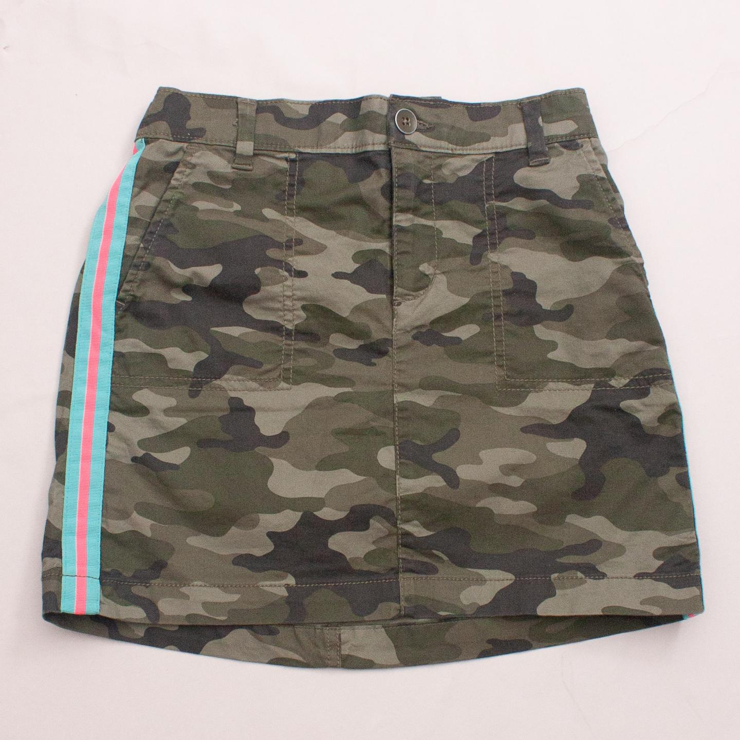 Gap camo patterned skirt with blue and pink stripe detail down the side, front and back pockets, belt loops and button/zip fastening *98% Cotton, 2% Spandex