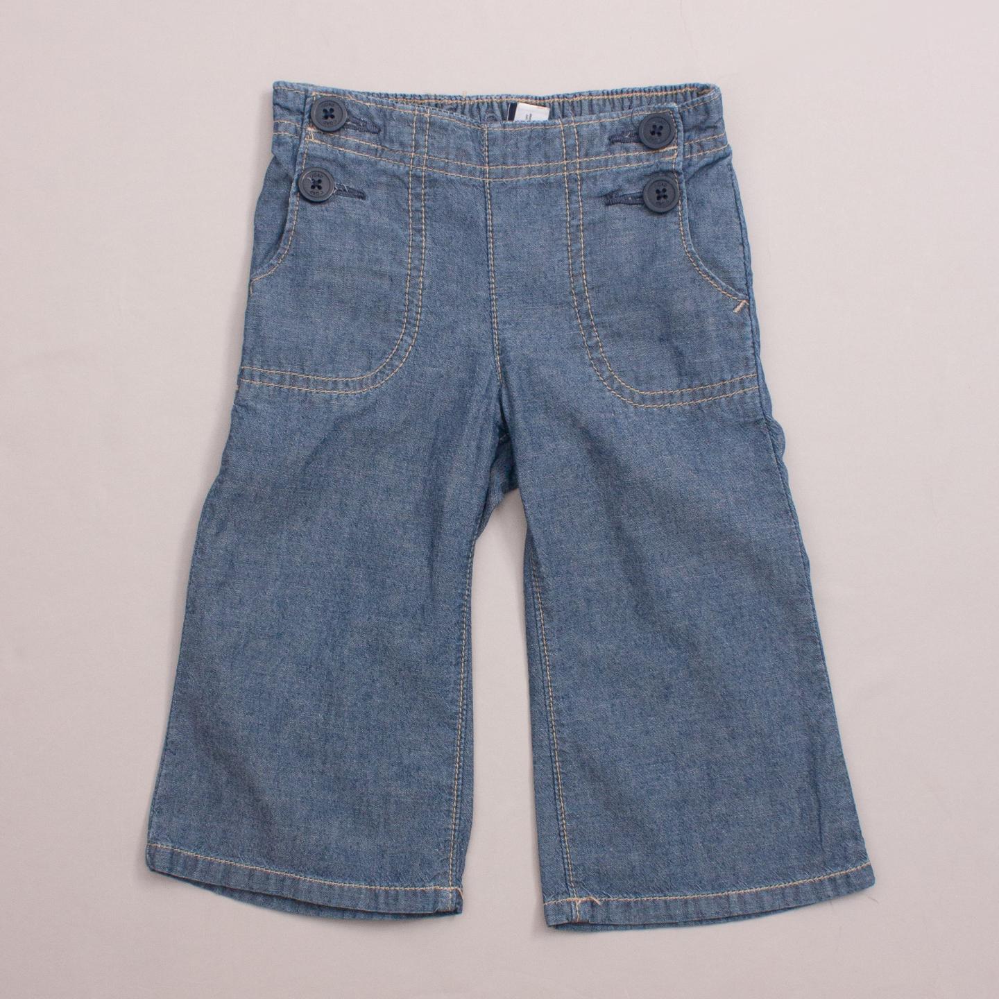 Gap chambray flared pants with front and back pockets, button details and elastic waistband - 100% Cotton