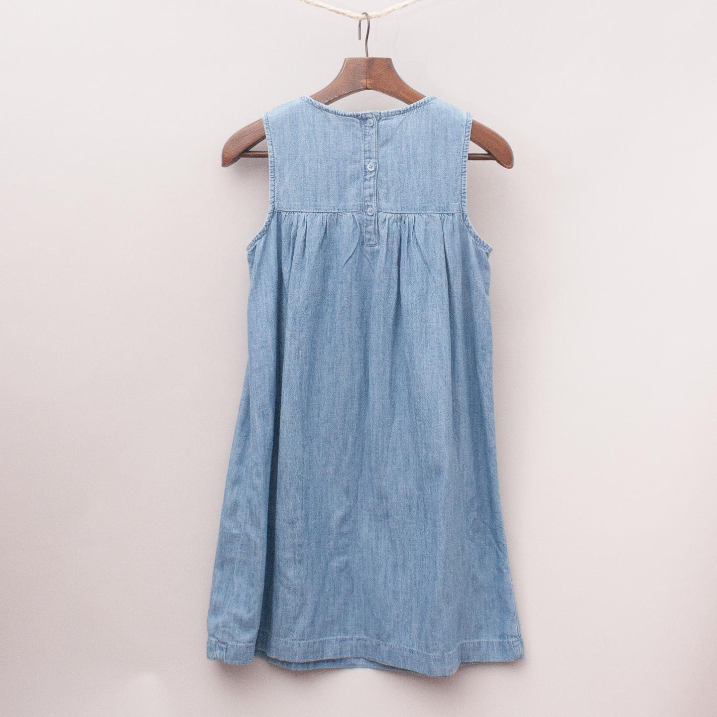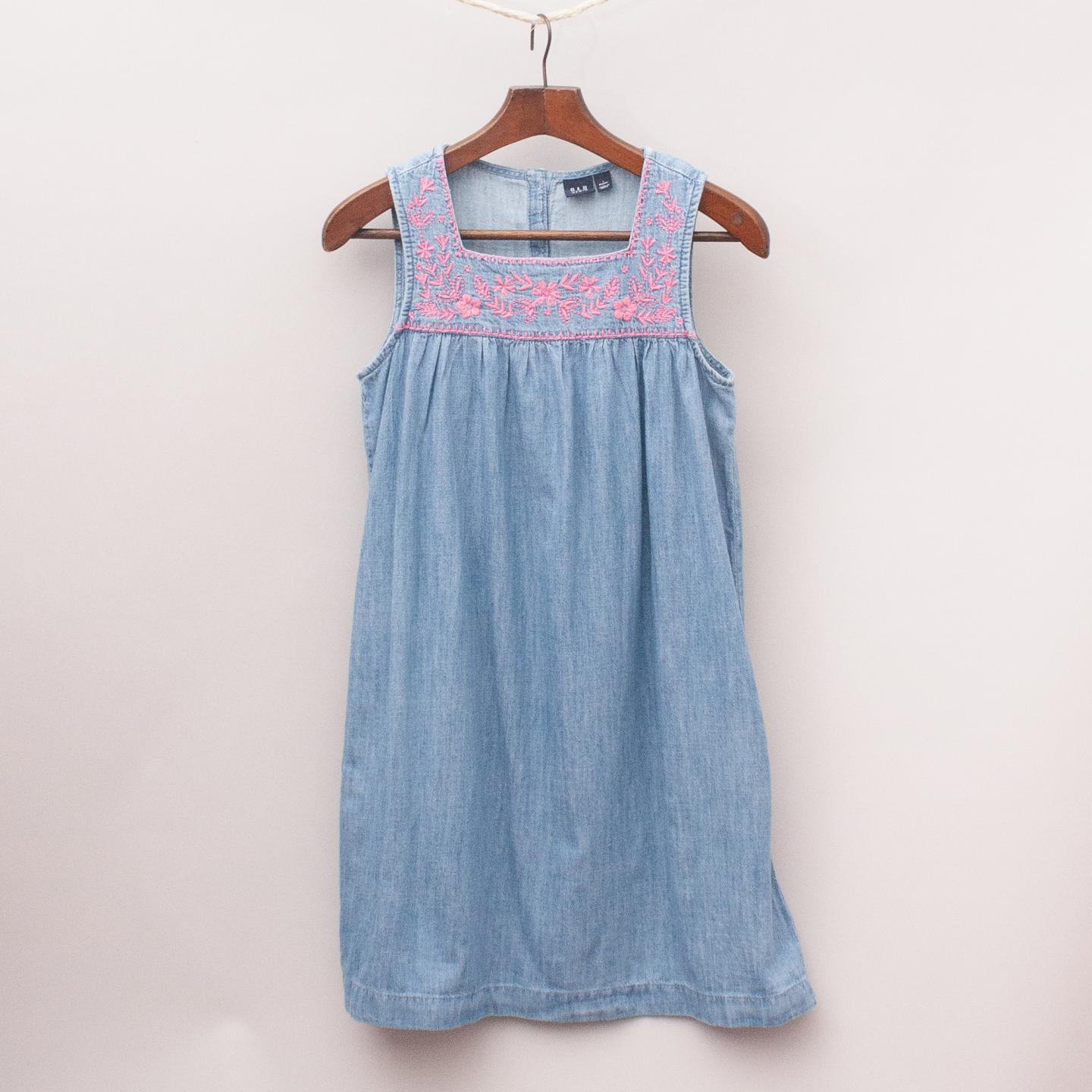 Gap "brand new with tags" denim dress with gathered front, pink and embroidered square style neckline and button down back closure *100% Cotton