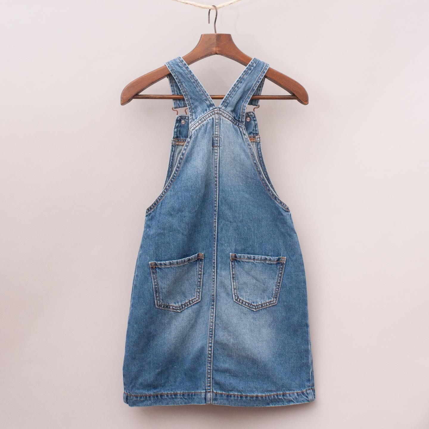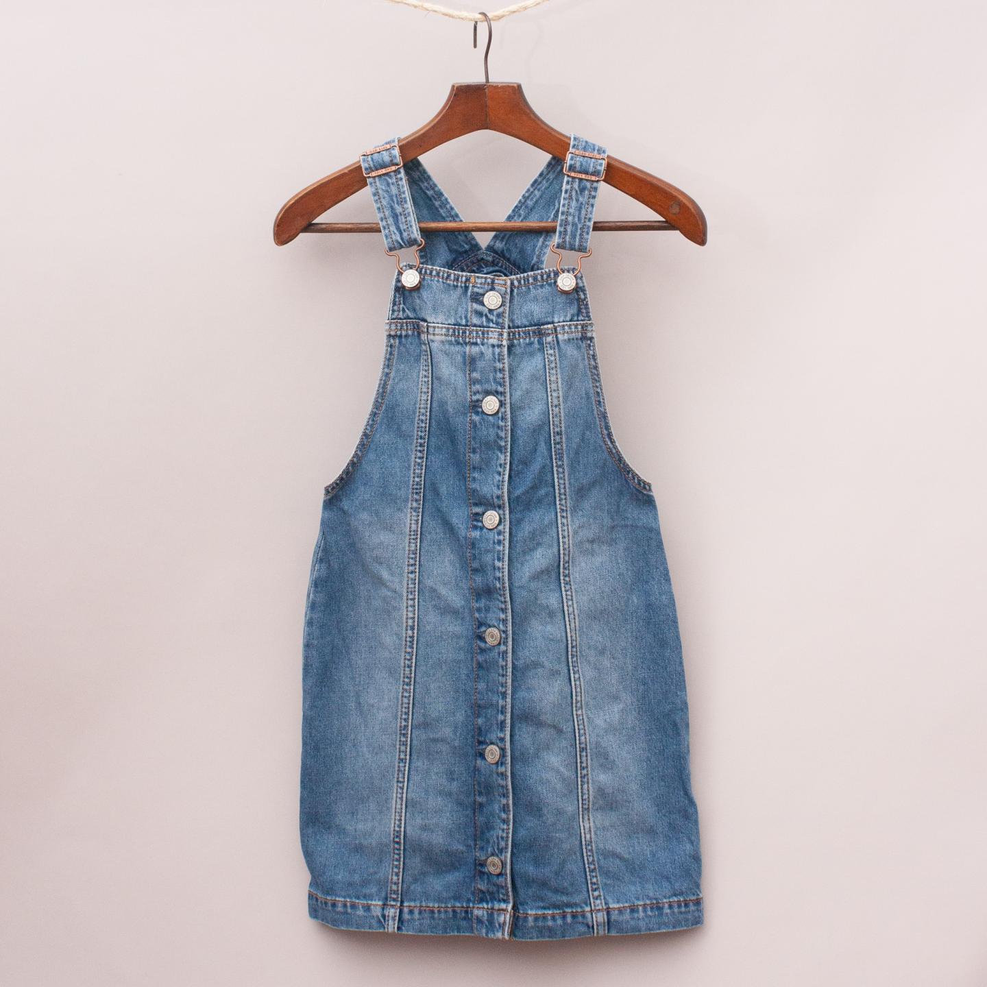 Gap denim overall style dress with two back pockets, full button down front and adjustable straps *100% Cotton