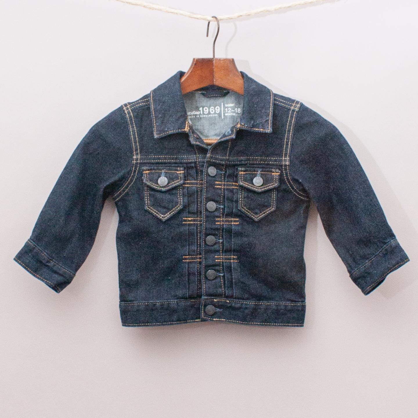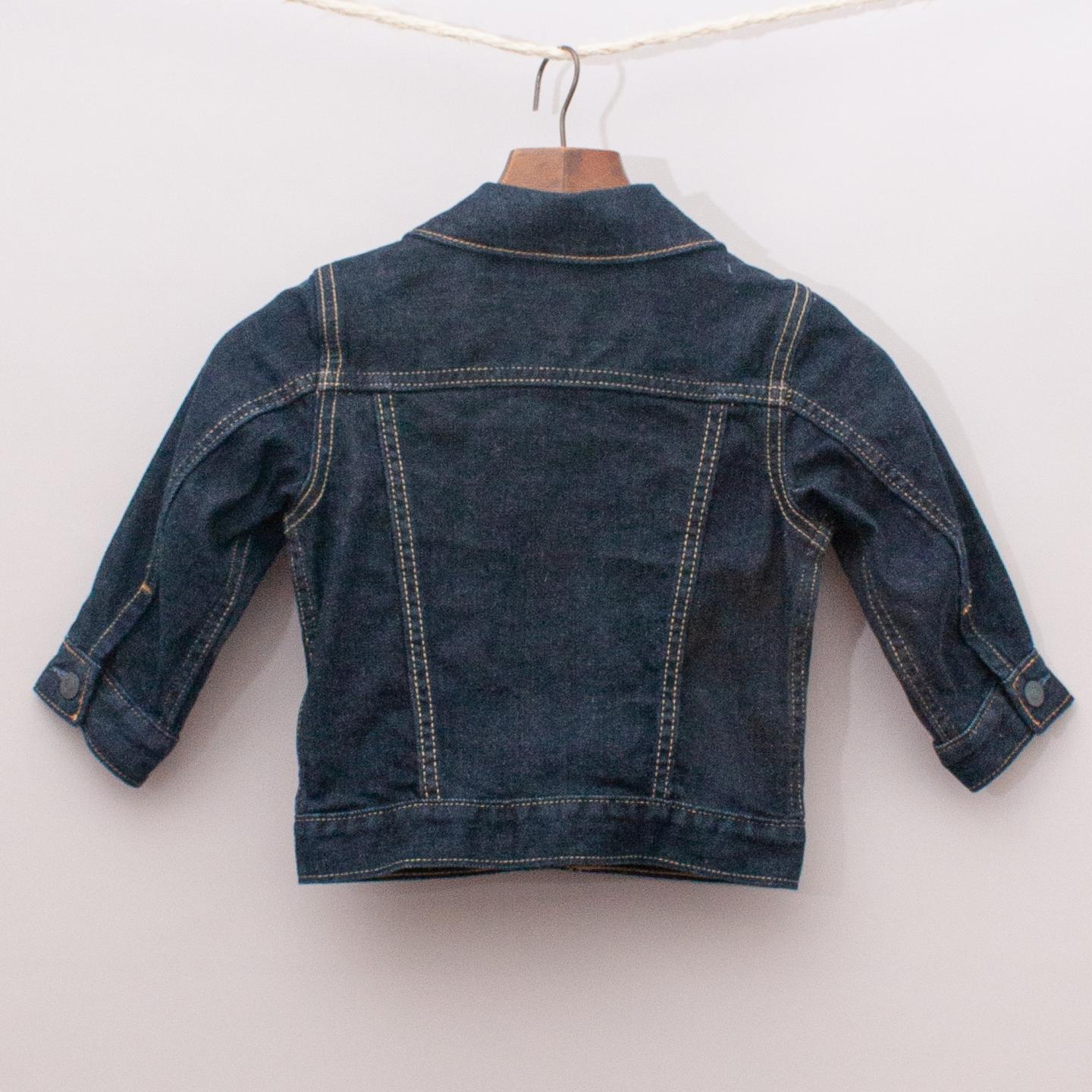 Gap dark navy denim jacket with two front pockets, pleated front detail and full button down front