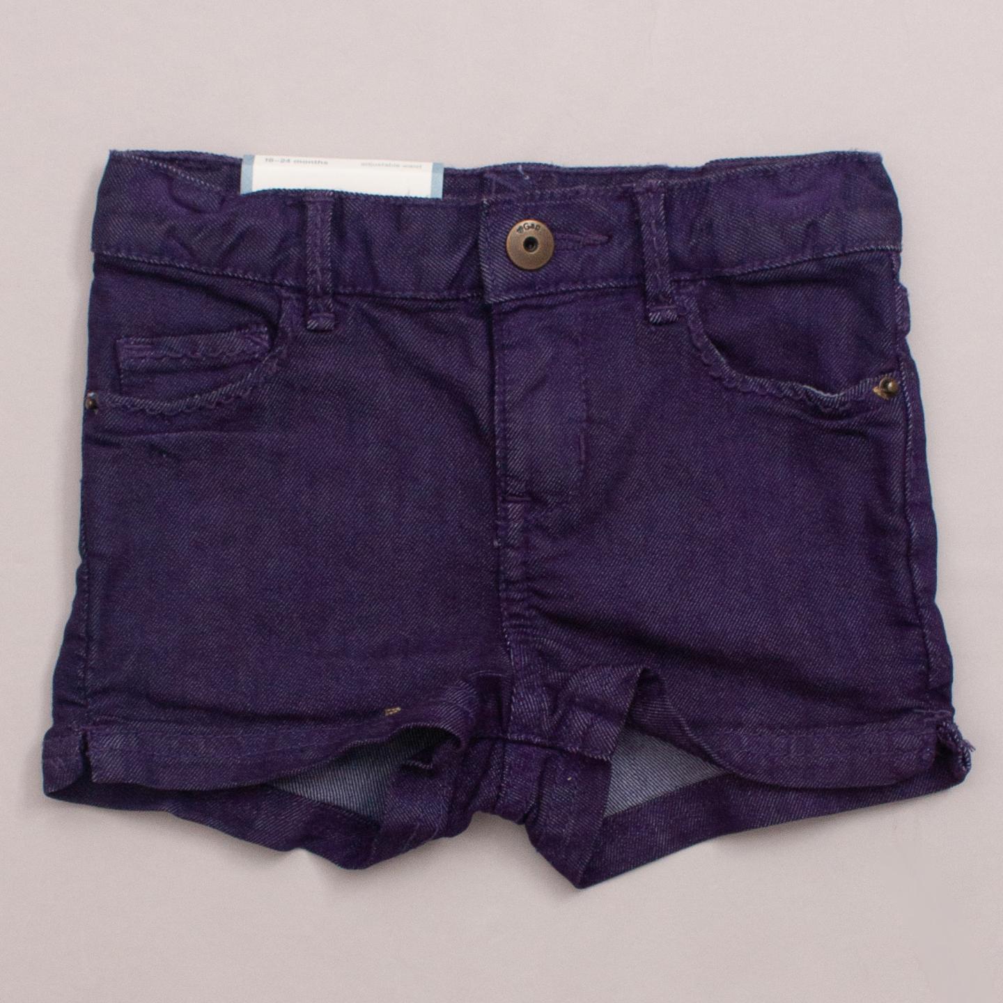 Gap "brand new with tags" deep purple denim shorts with front and back pockets, belt loops and button/zip fastening - 70% Cotton, 30% Polyester