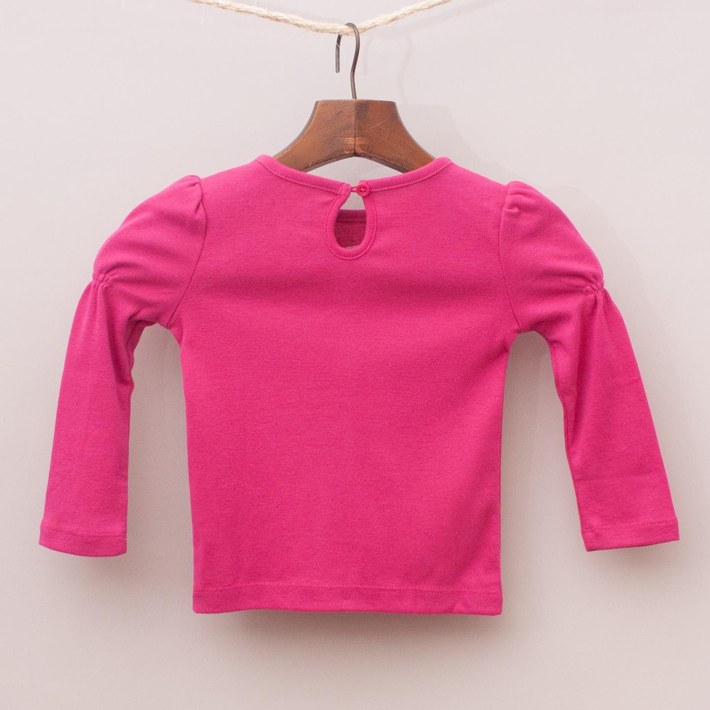 Gap dark pink long sleeve top with gathered sleeve detail and embroidered hearts on the front - 100% Cotton