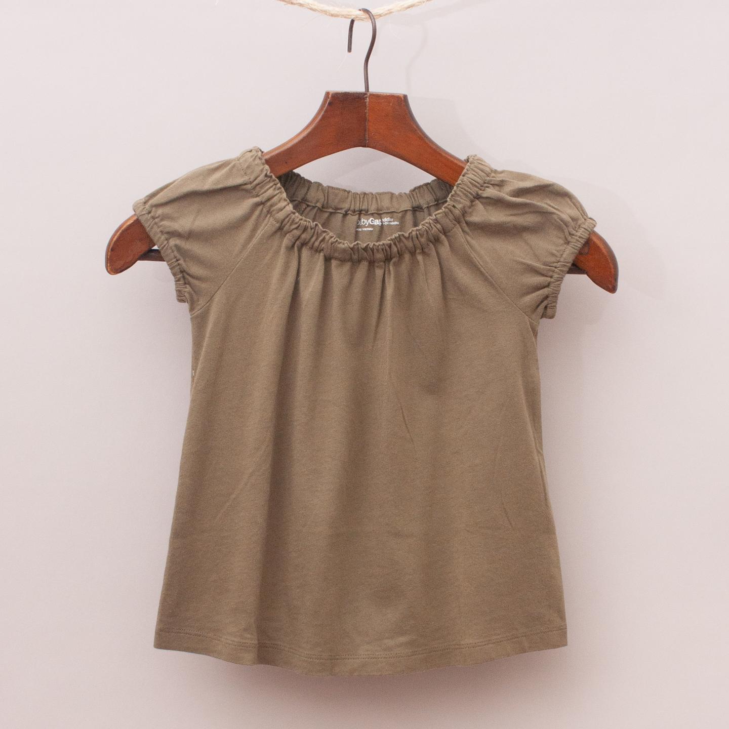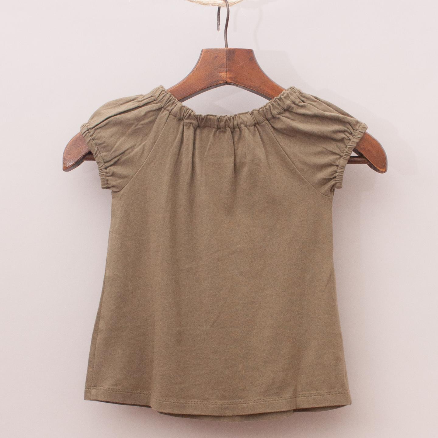 Gap khaki gathered t-shirt with elastic neckline and floaty style - 100% Cotton