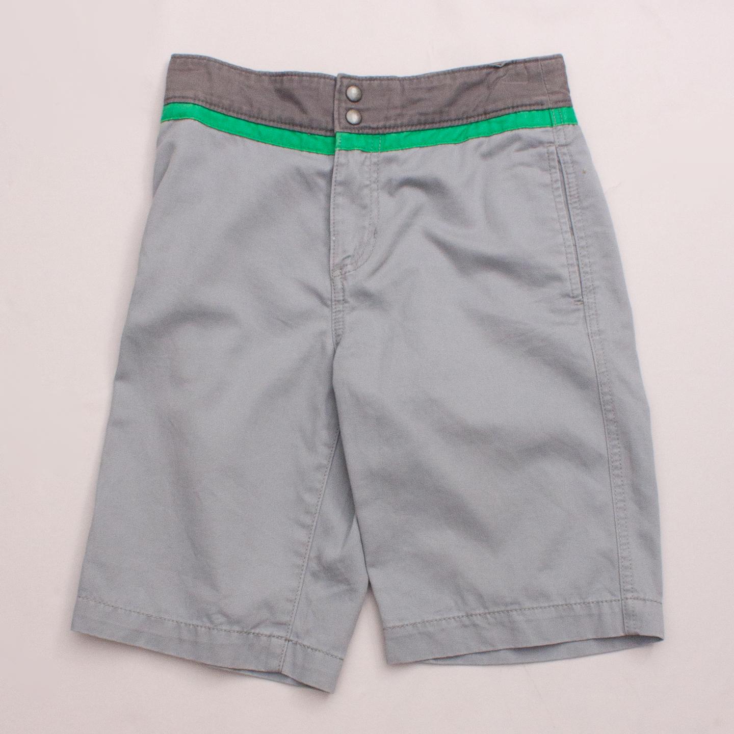Gap grey denim shorts with front and back pockets, green stripe detail, belt loops and button/zip fastening *100% Cotton