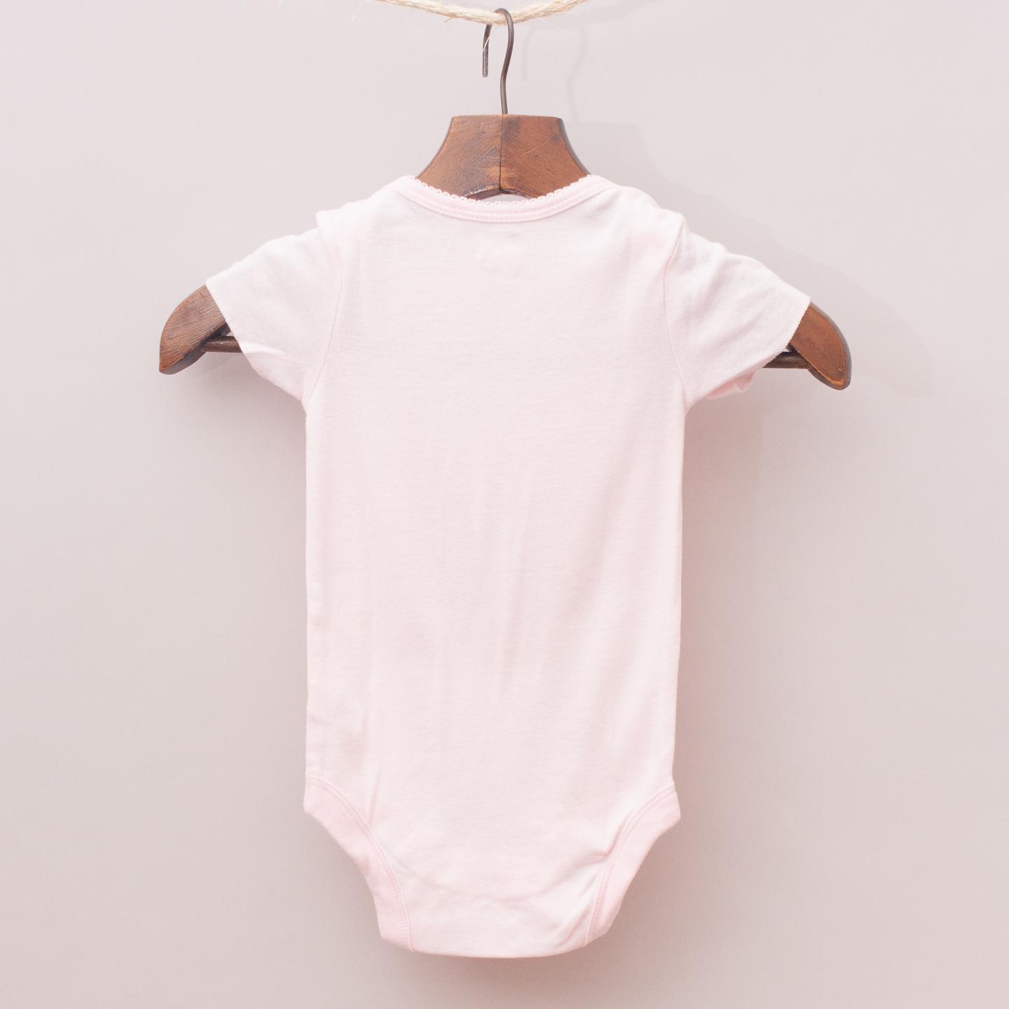 Gap "brand new without tags" pastel pink short sleeve romper with embroidered bear on the front and scalloped edge trim - 100% Cotton