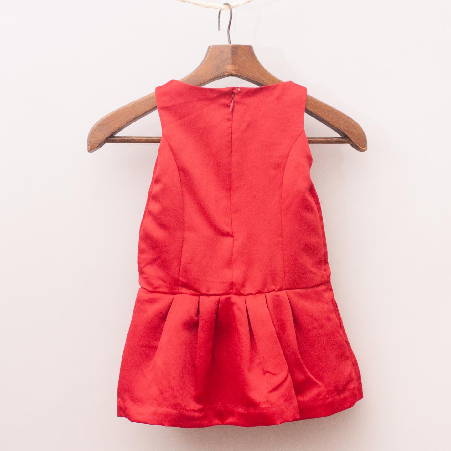 Gap red satin dress with tulle layered pleated skirt and full zip back closure - 100% Polyester