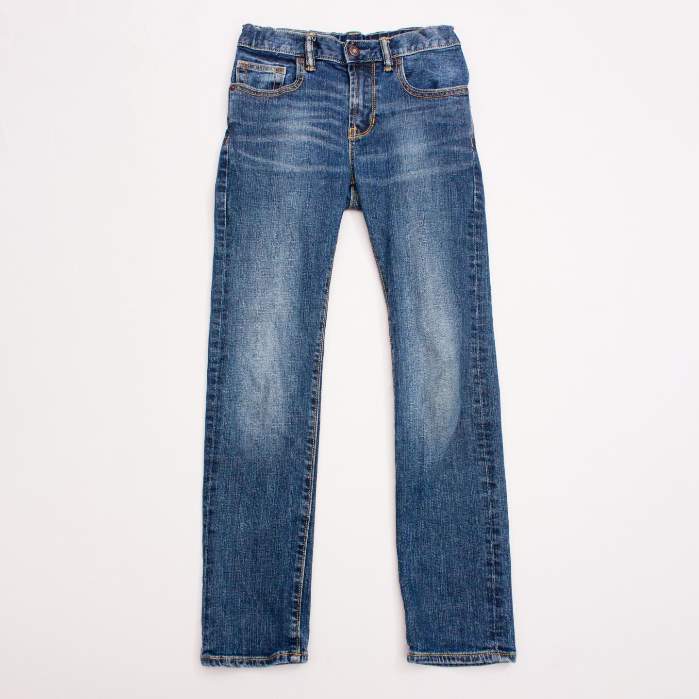 Gap skinny navy blue distressed jeans with front and back pockets, belt loops and button/zip fastening