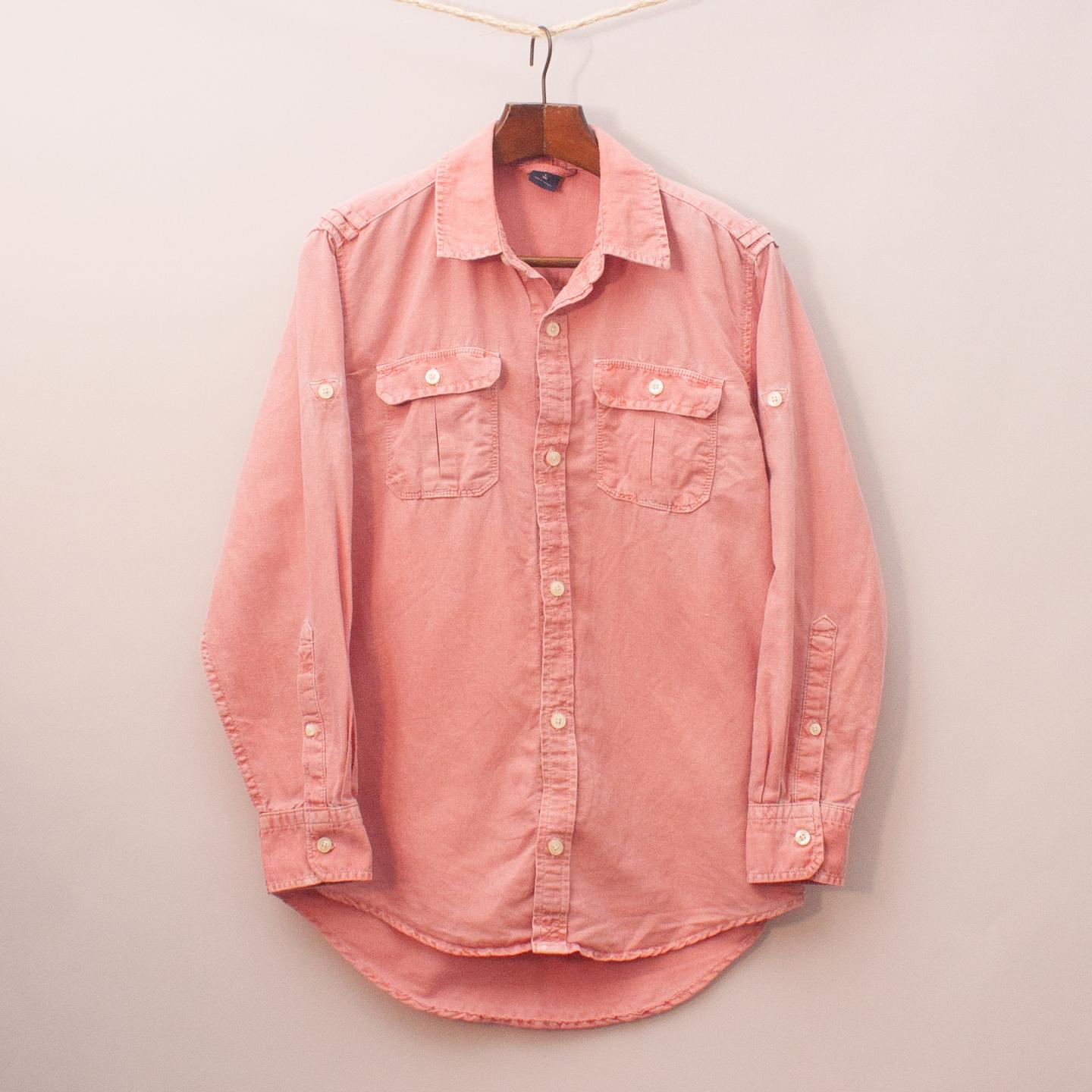 Gap watermelon toned long sleeve shirt with two front pockets and full button down front *Cotton/Linen Blend