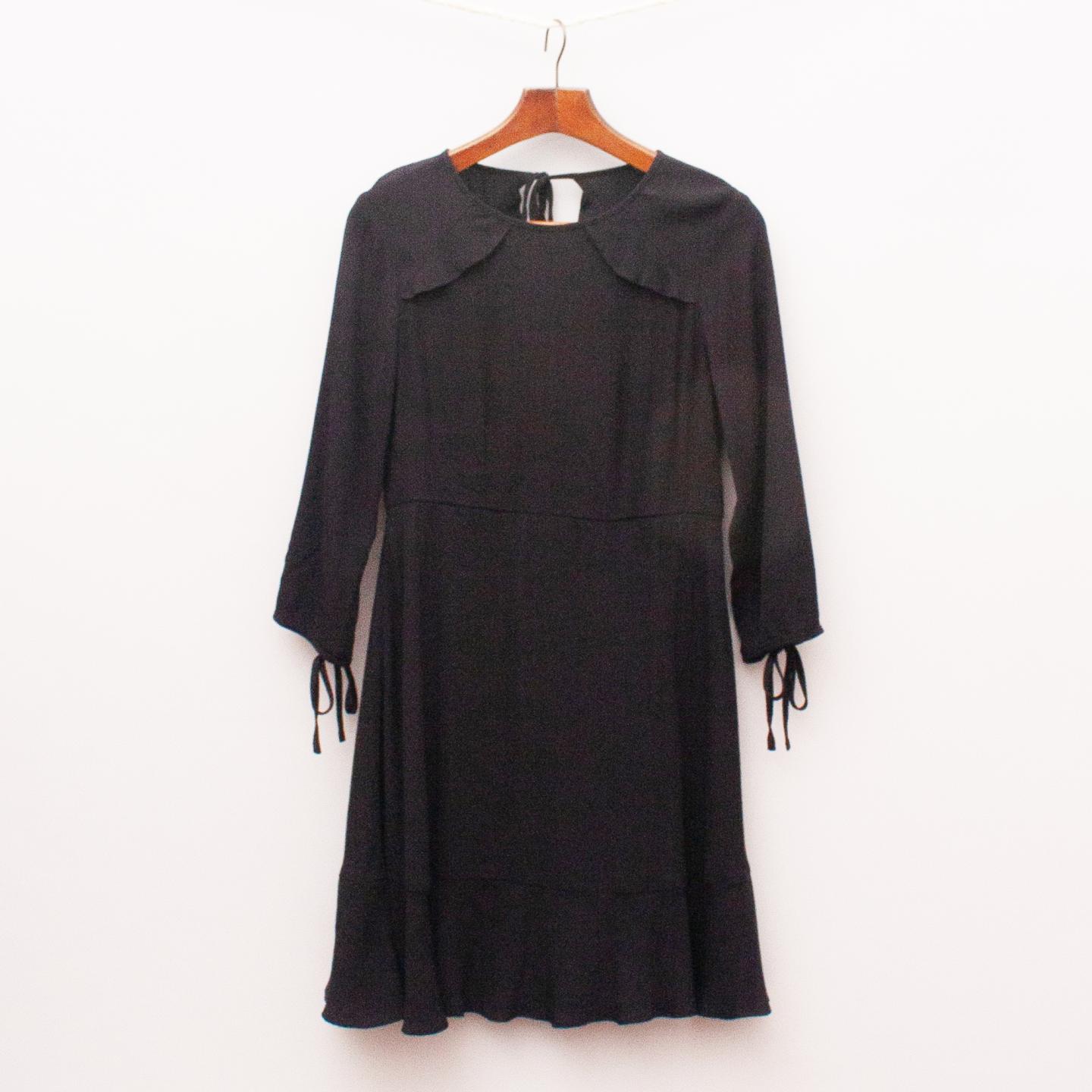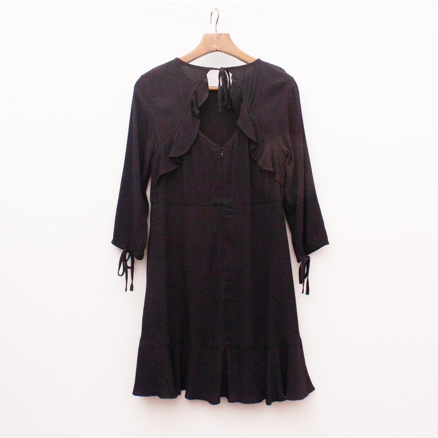 Gelati Jeans black long sleeve dress with fitted bodice, ruffle details, tie cuffs and zip back closure