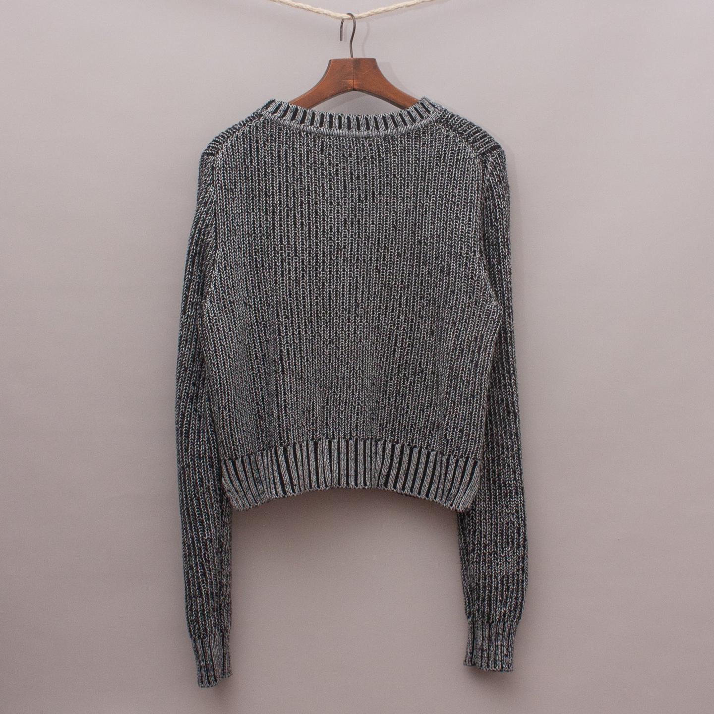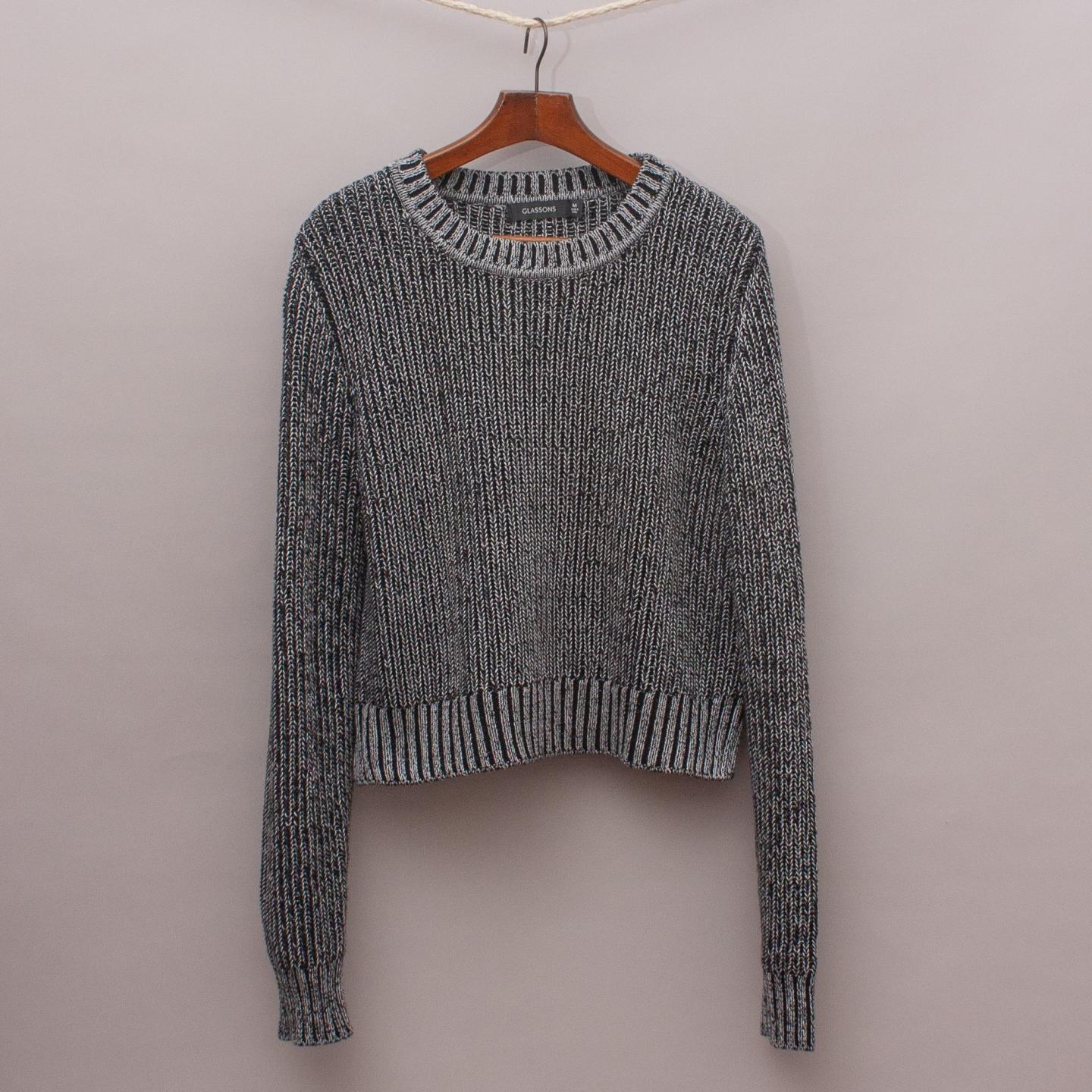 Glassons black and grey mixed ribbed knit jumper with wide waistband